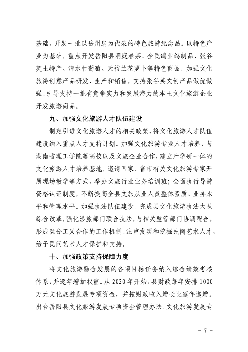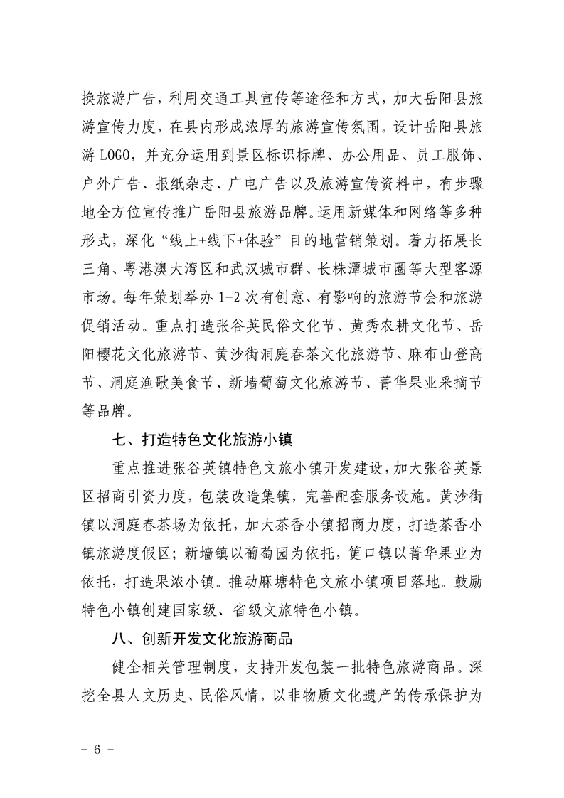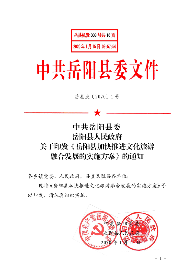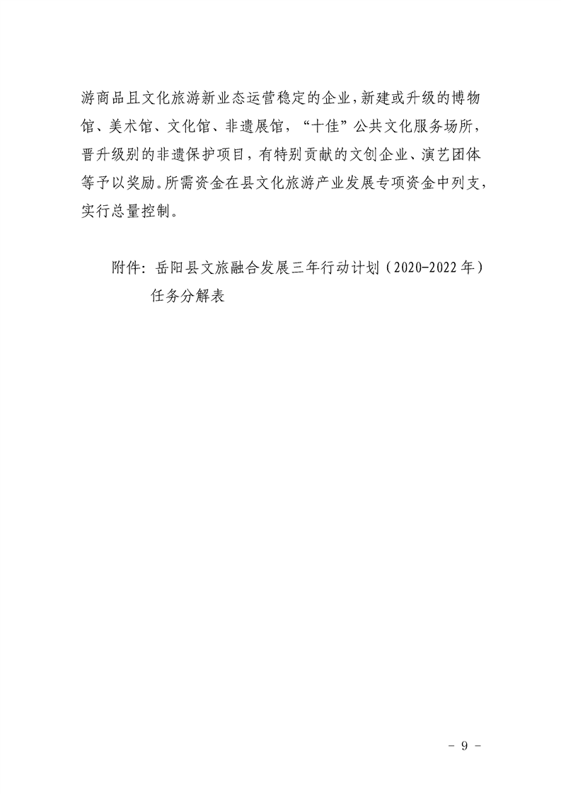 嶽陽縣加快推進文化旅遊融合發展的實施方案