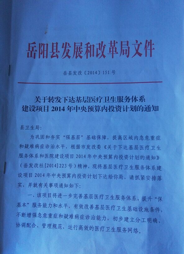 關於轉發下達基層醫療衛生服務體係建設項目2014年中央預算內投資計劃的通知
