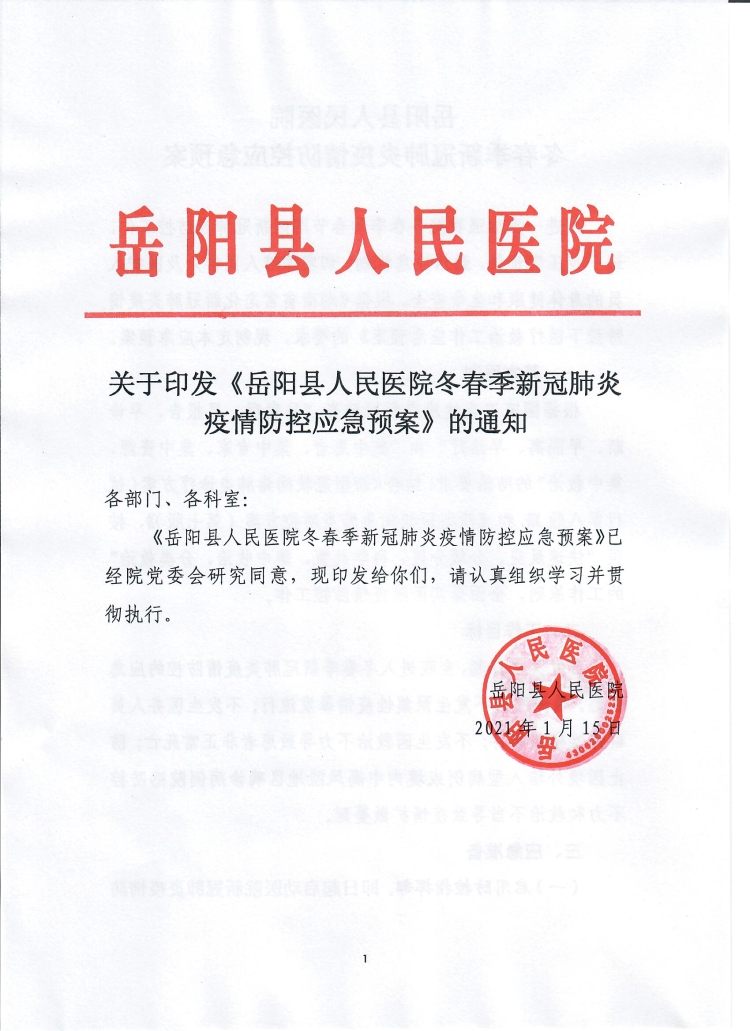 自發文之日起,全院進入冬春季新冠肺炎疫情防控的應急狀態。確保院內不發生聚集性疫情暴發流行;不發生醫務人員群體性感染事件;不發生因救治不力導致患者非正常死亡;防止因境外輸入型病例或境內中高風險地區確診病例院感防控不力和救治不當導致疫情擴散蔓延。
