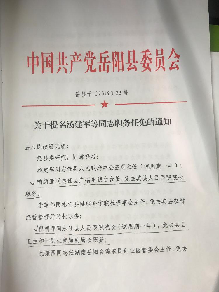 關於提名湯建軍等同誌職務任免的通知(程朝暉)
