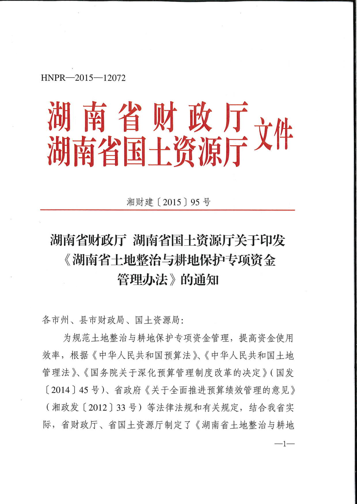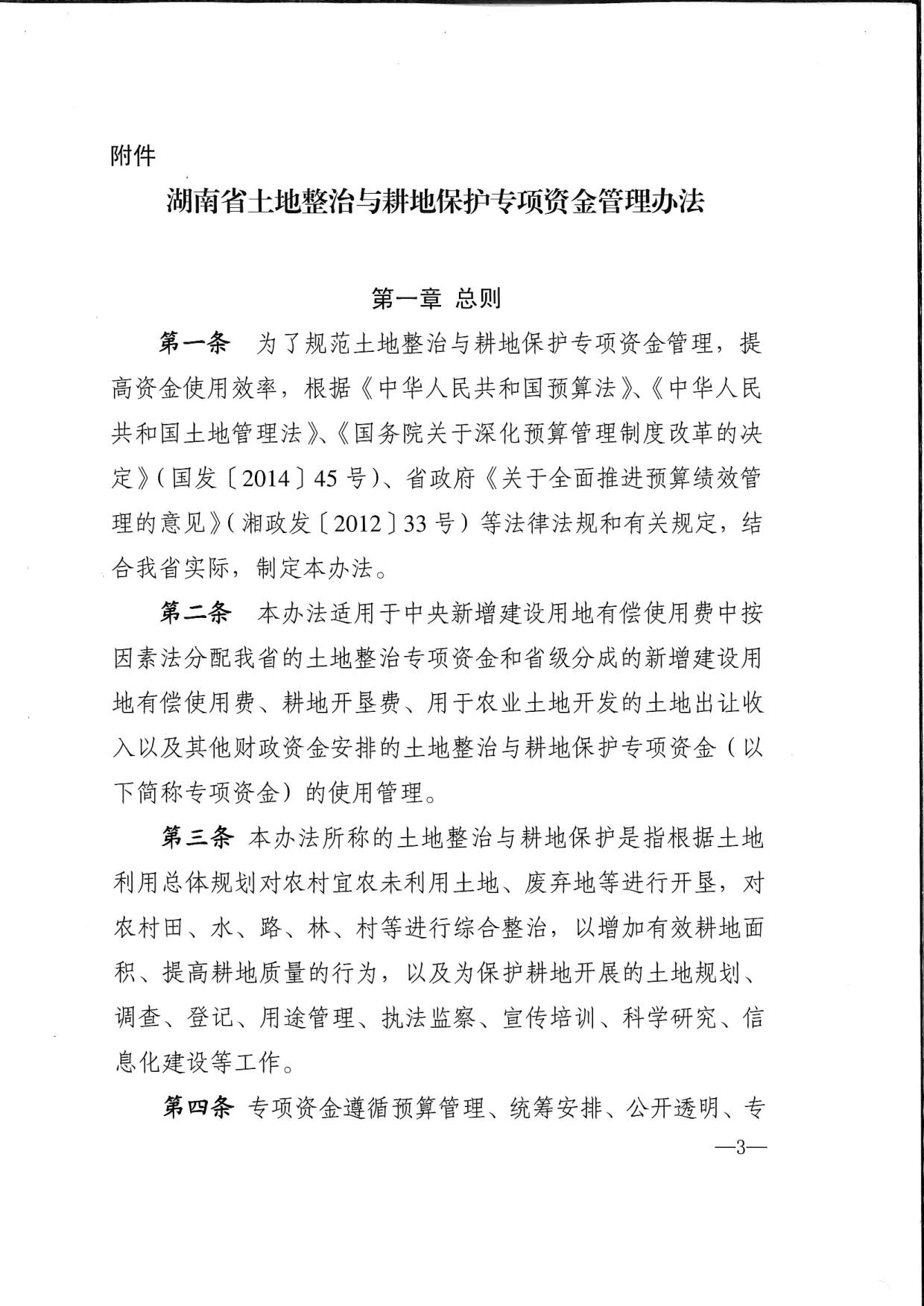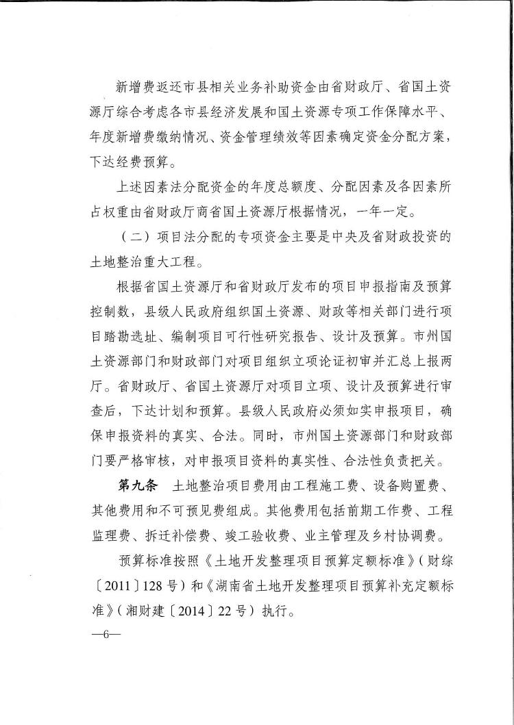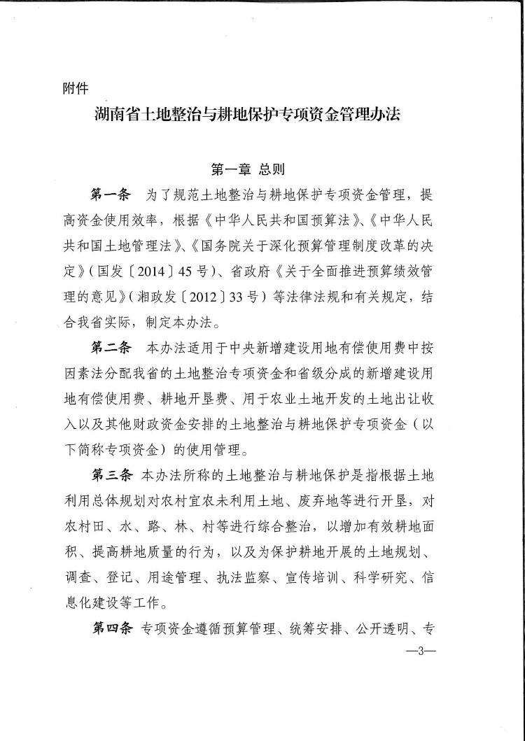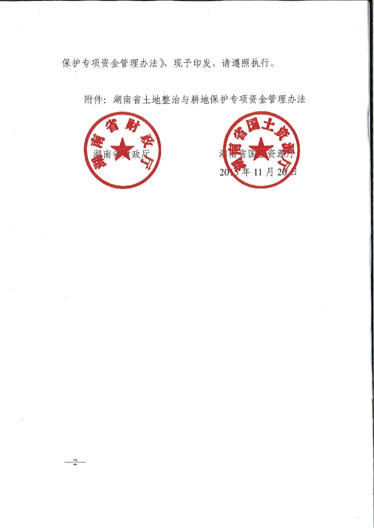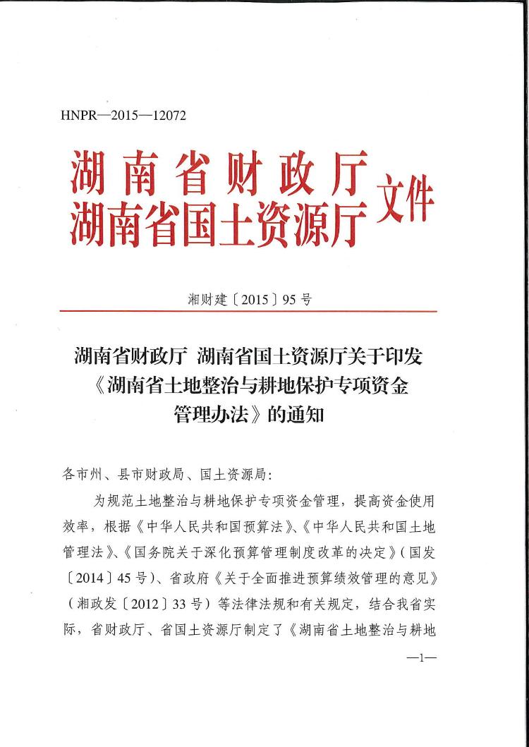 湖南省財政廳 湖南省國土資源廳關於印發《湖南省土地整治與耕地保護專項資金管理辦法》的通知