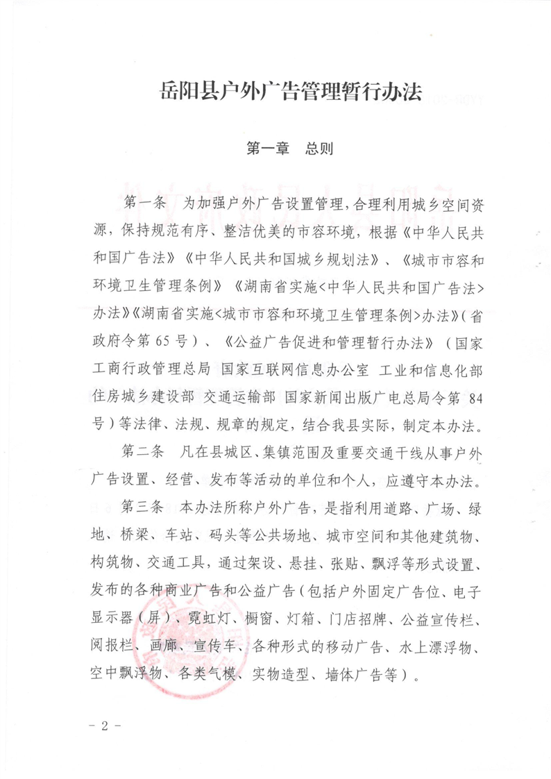嶽陽縣戶外廣告管理暫行辦法