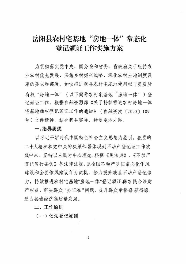 嶽陽縣農村宅基地“房地一體”常態化登記頒證工作實施方案