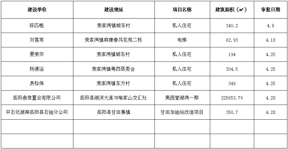 2018年4月份建設工程審批情況公布