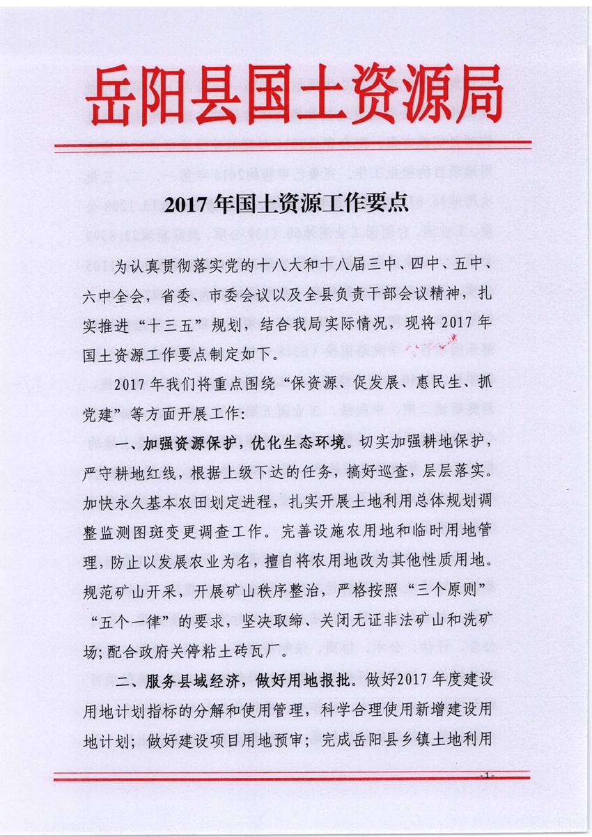 2017年國土資源工作要點