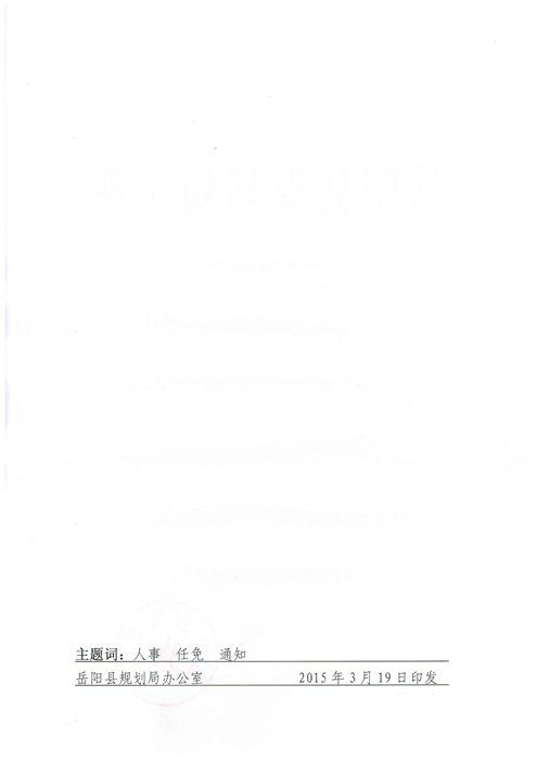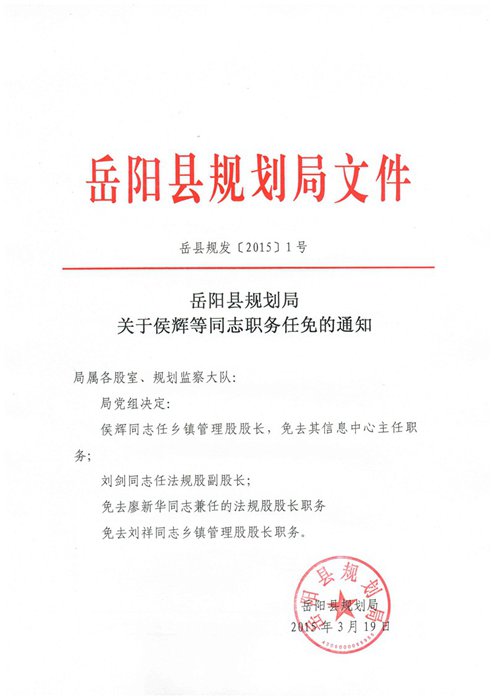 嶽陽縣規劃局關於侯輝等同誌職務任免的通知