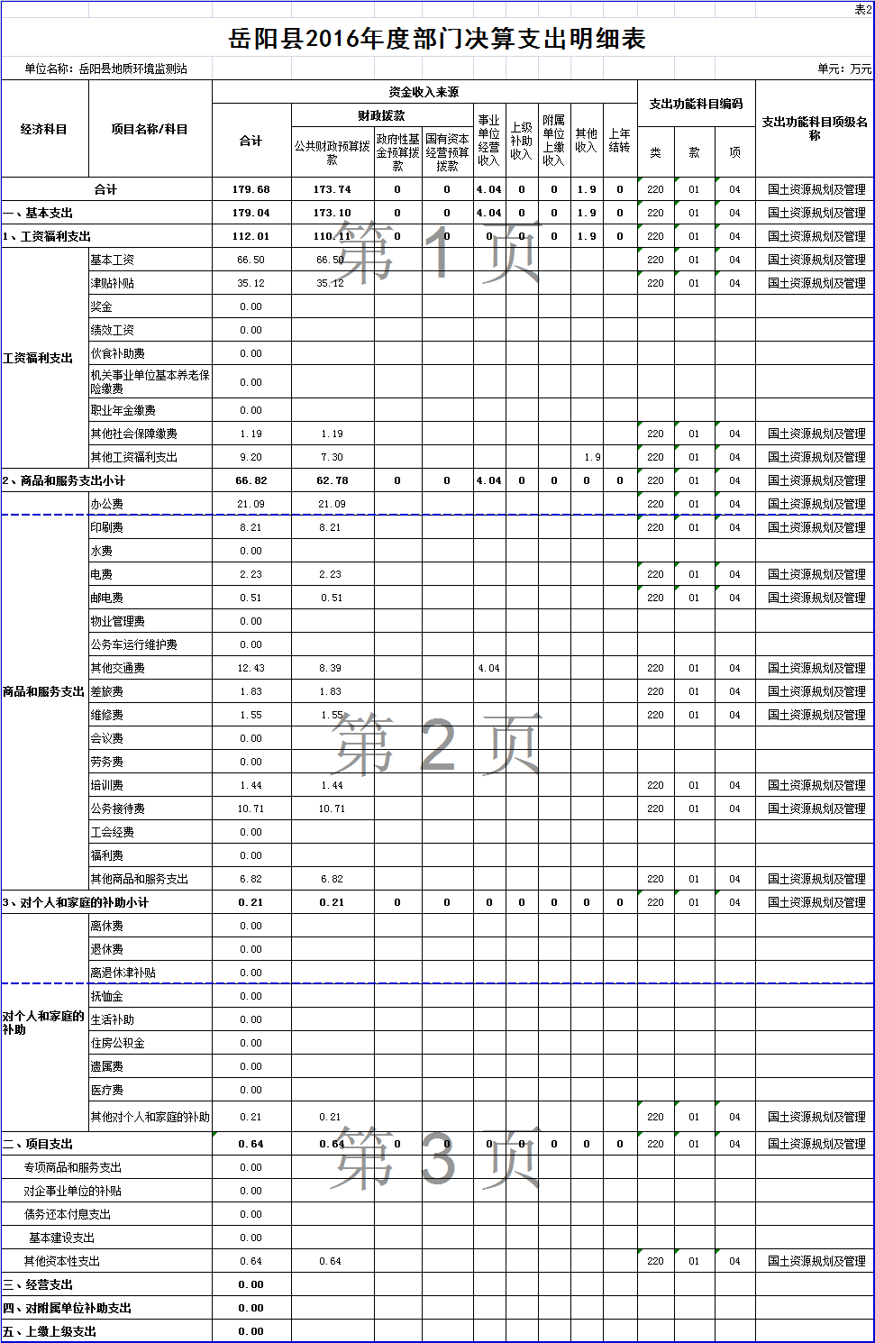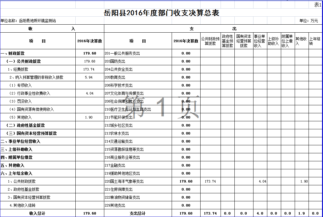 嶽陽縣2016年度部門決算公開--地環站