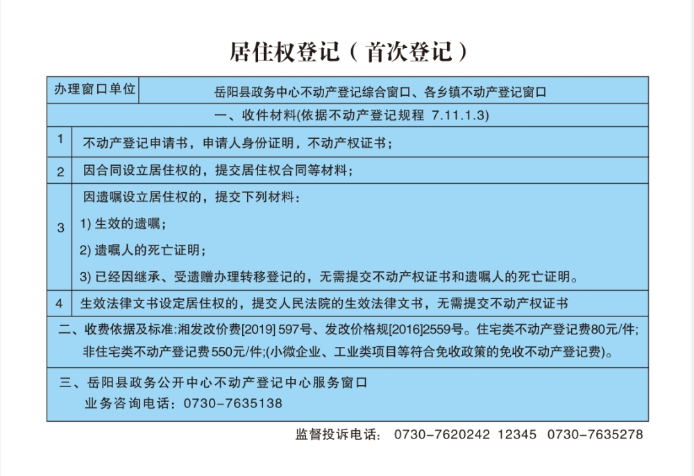 居住權(首次登記)辦事指南