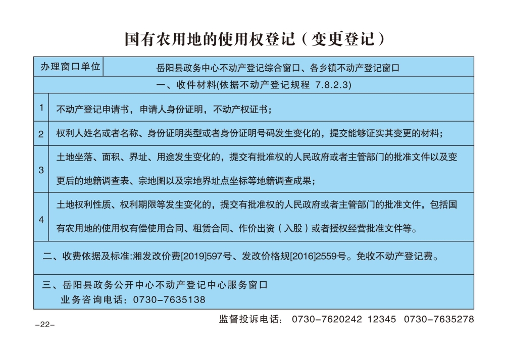 國有農用地的使用權登記(變更登記)辦事指南