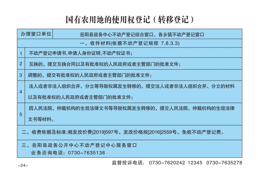 國有農用地的使用權登記(轉移登記)辦事指南