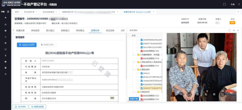 “娭毑,您看這兒,給您拍張照片。”近日,來自嶽陽縣自然資源局不動產登記中心的工作人員,正在為程愛芝老人拍照、核實資料。“謝謝你們,還特意跑一趟,幫关键词2解決了房屋過戶難題!”手續辦好後,程娭毑緊緊握著工作人員的手感激地說。
