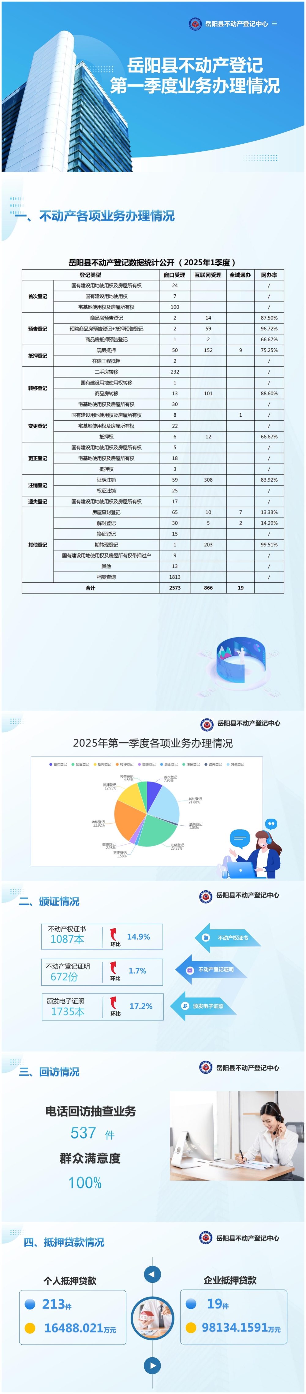 嶽陽縣不動產登記中心2025年一季度業務辦理情況