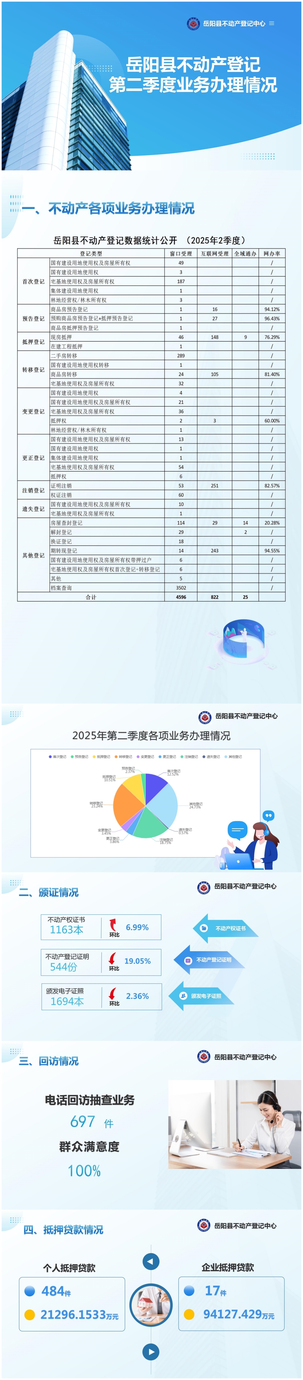 嶽陽縣不動產登記中心2025年二季度業務辦理情況