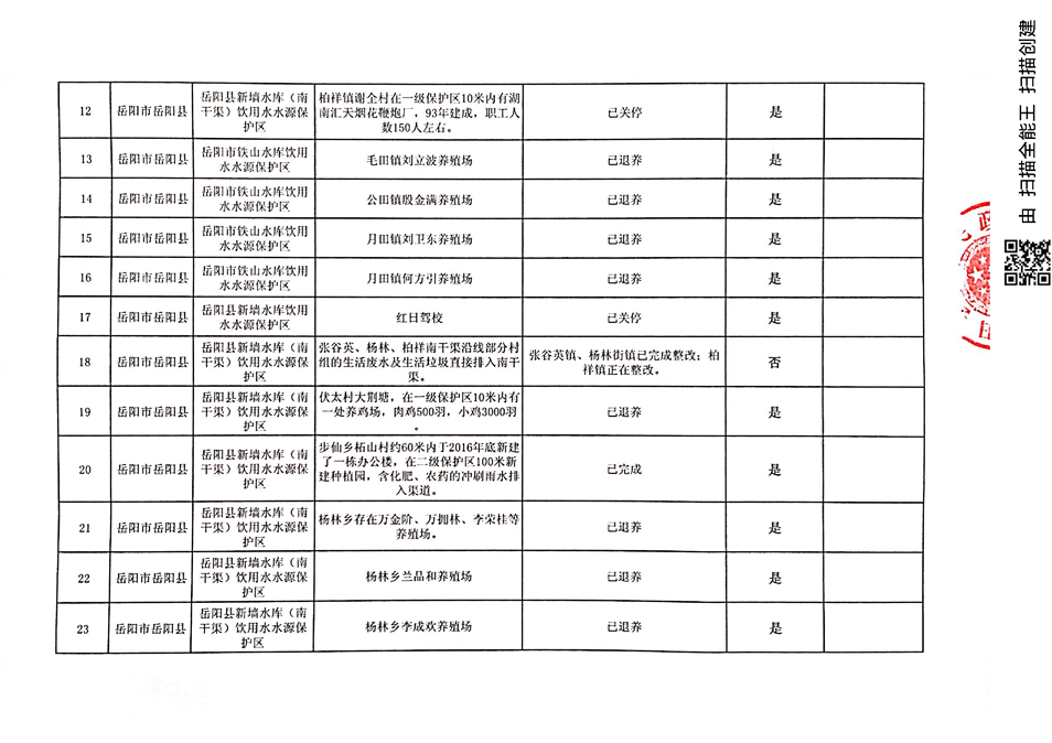 2018年6月飲用水水源地環境問題清理整治進展情況統計表