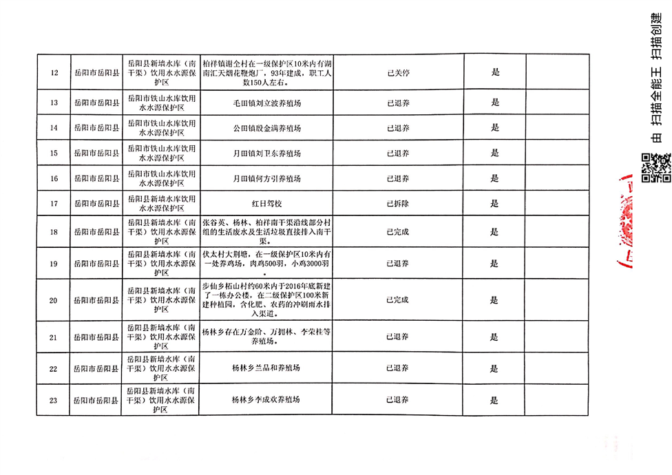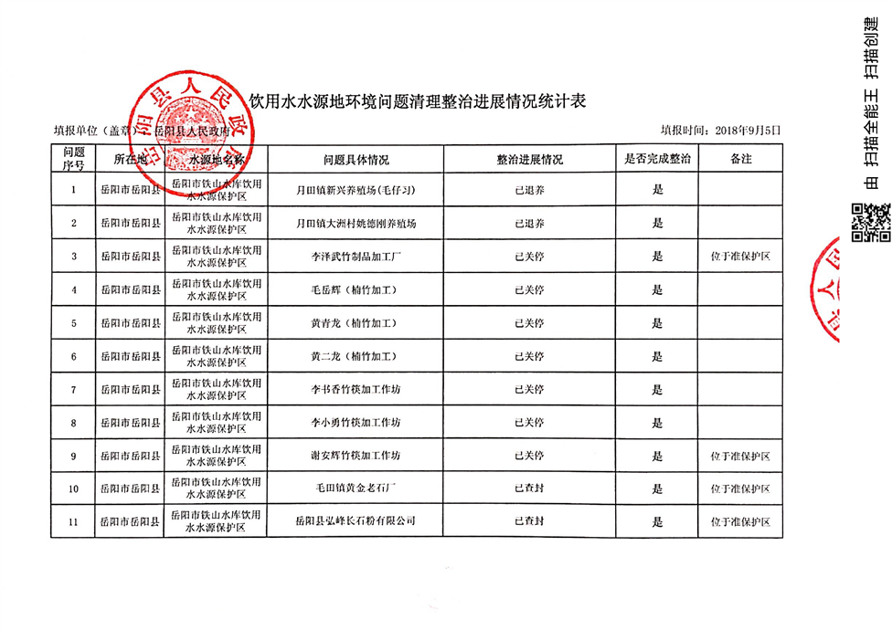 2018年9月飲用水水源地環境問題清理整治進展情況統計表