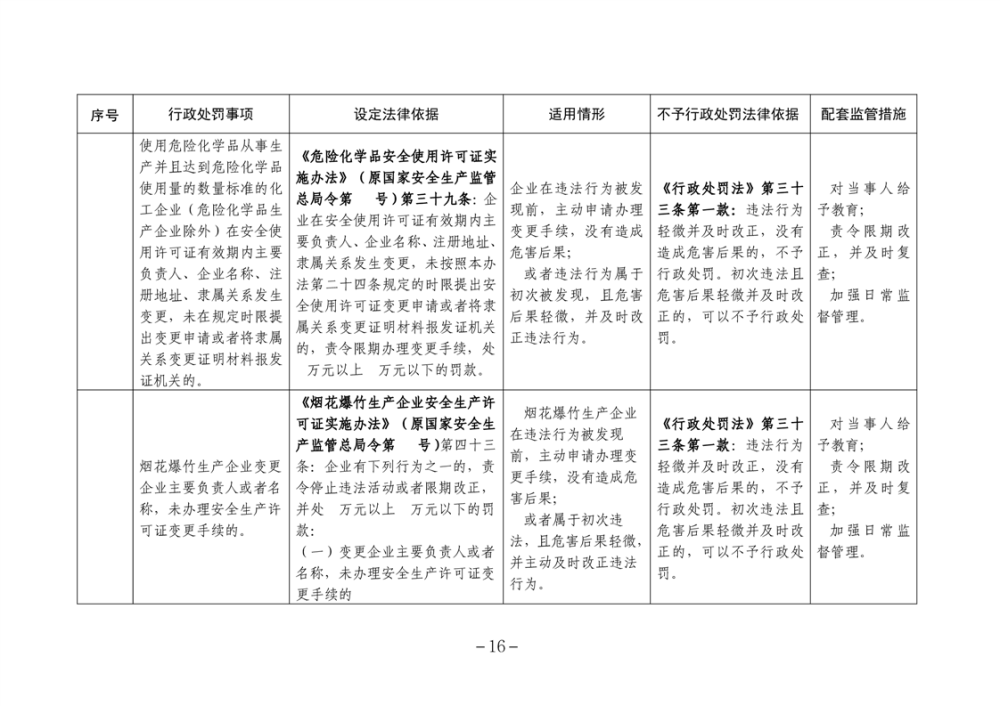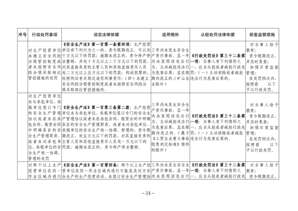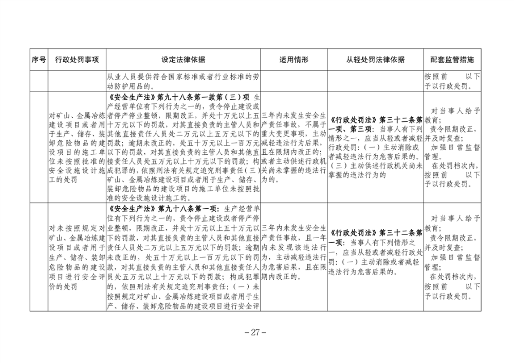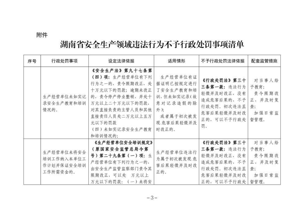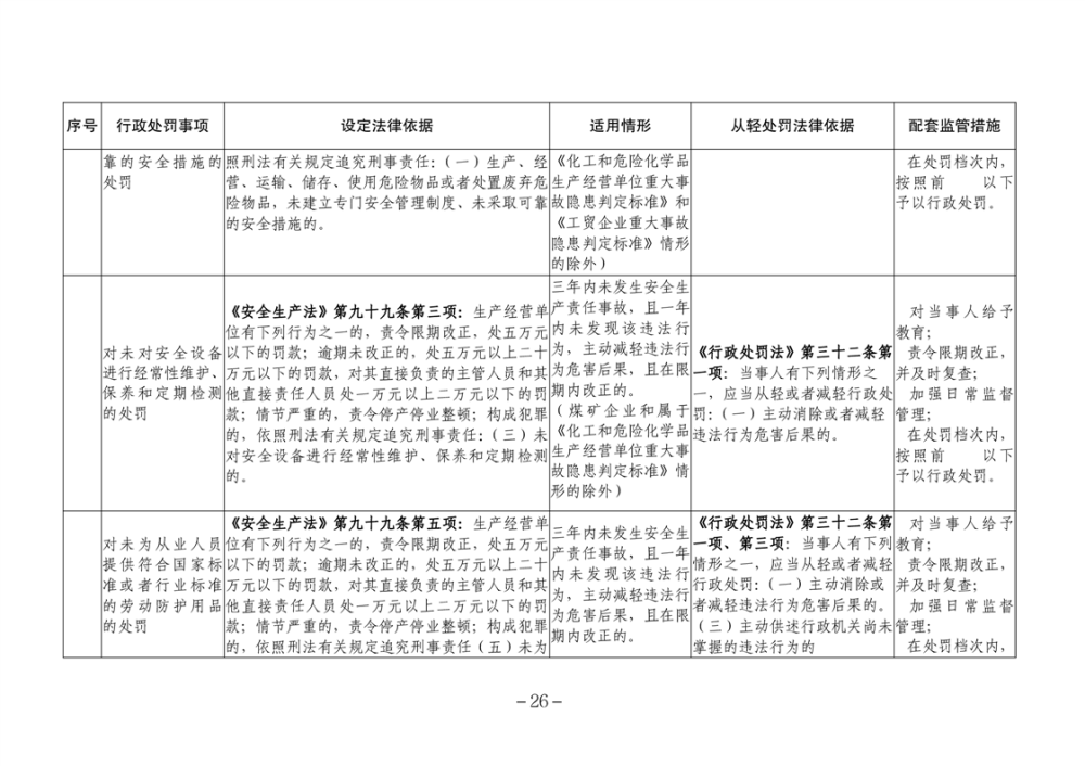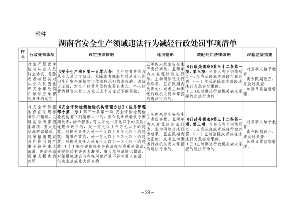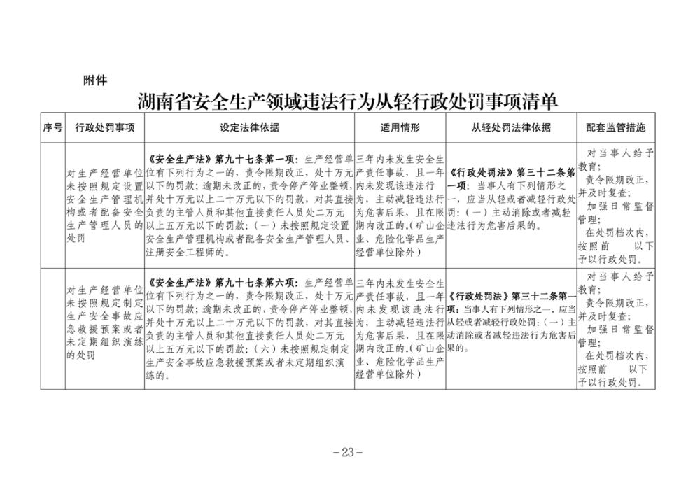 湖南省安全生產領域違法行為予行政處罰從輕行政處罰減輕行政處罰不予行政強製事項清單