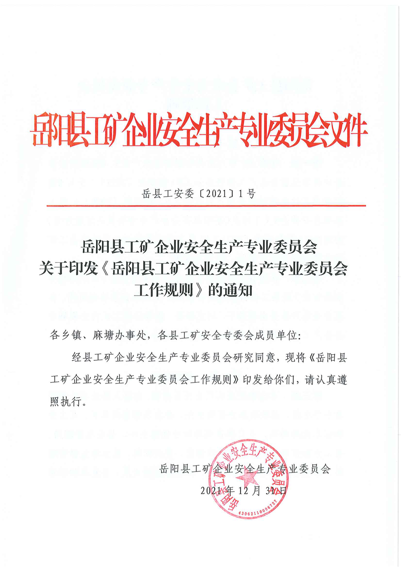 嶽陽縣工礦企業安全生產專業委員會工作規則