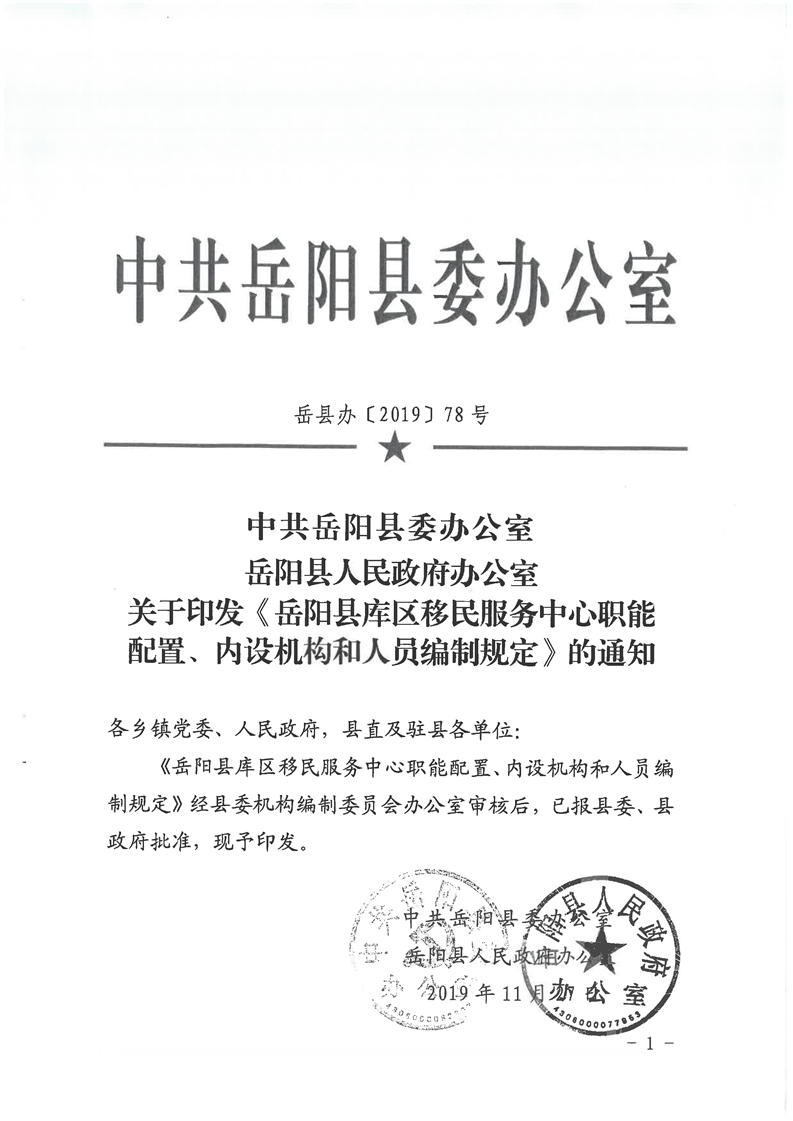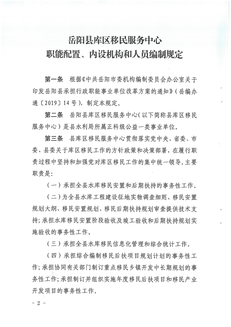 嶽陽縣庫區移民服務中心職能配置內設機構和人員編製規定
