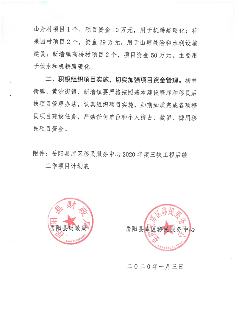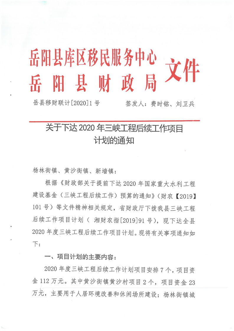 關於下達2020年三峽工程後續工作項目計劃的通知
