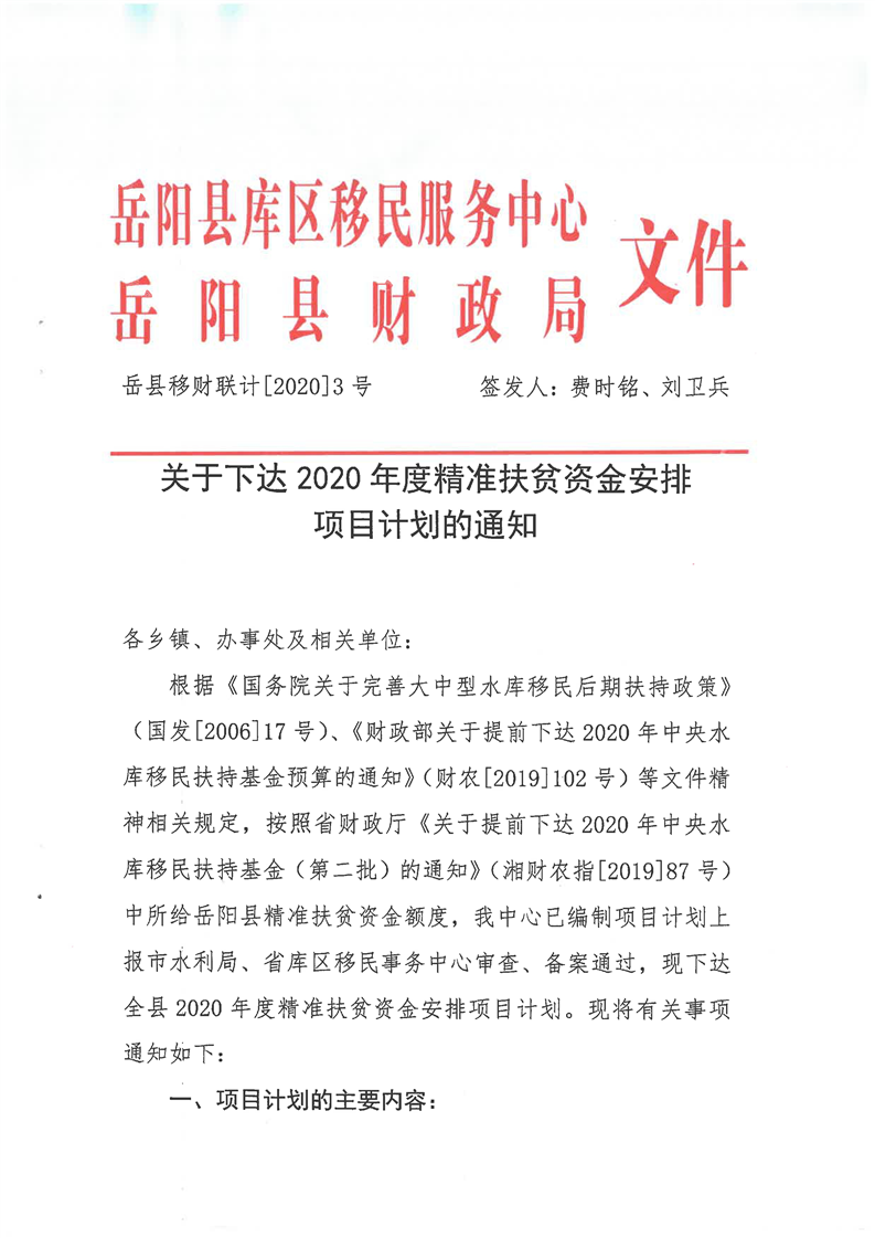關於下達2020年度精準扶貧資金安排項目計劃的通知