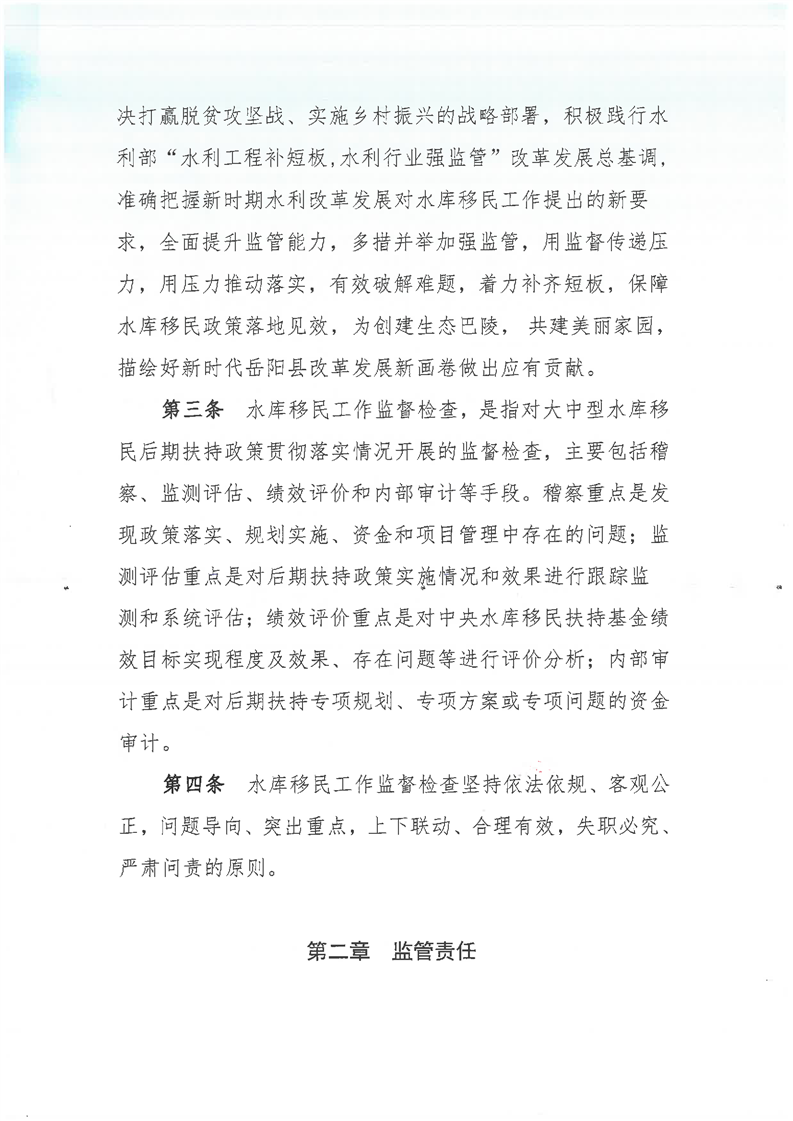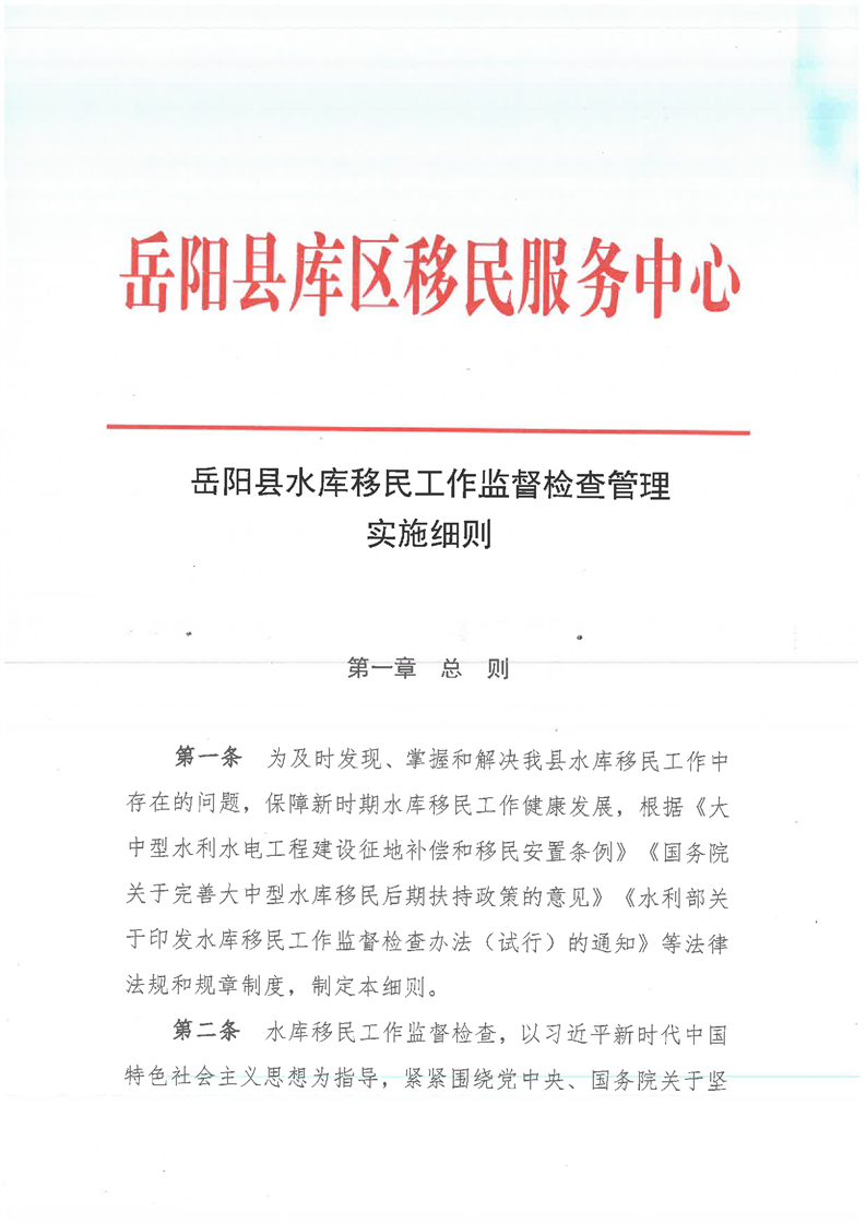 嶽陽縣水庫移民工作監督檢查管理實施細則