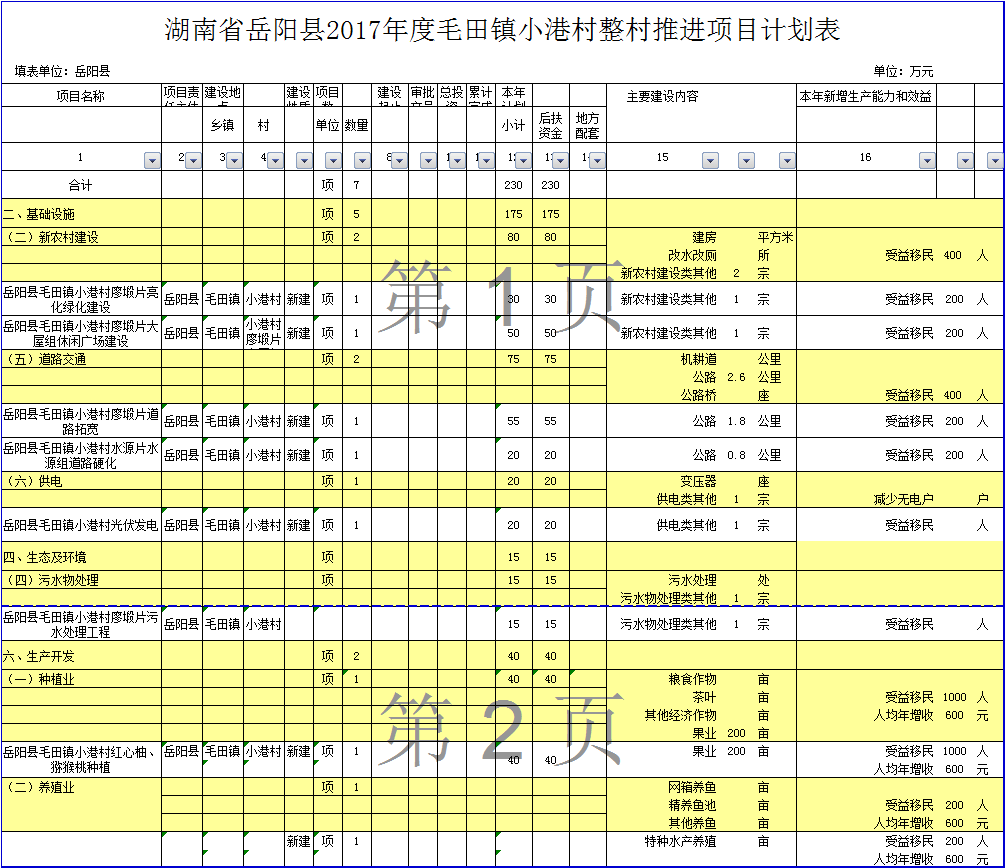 湖南省嶽陽縣2017年度毛田鎮小港存整存推進項目計劃表