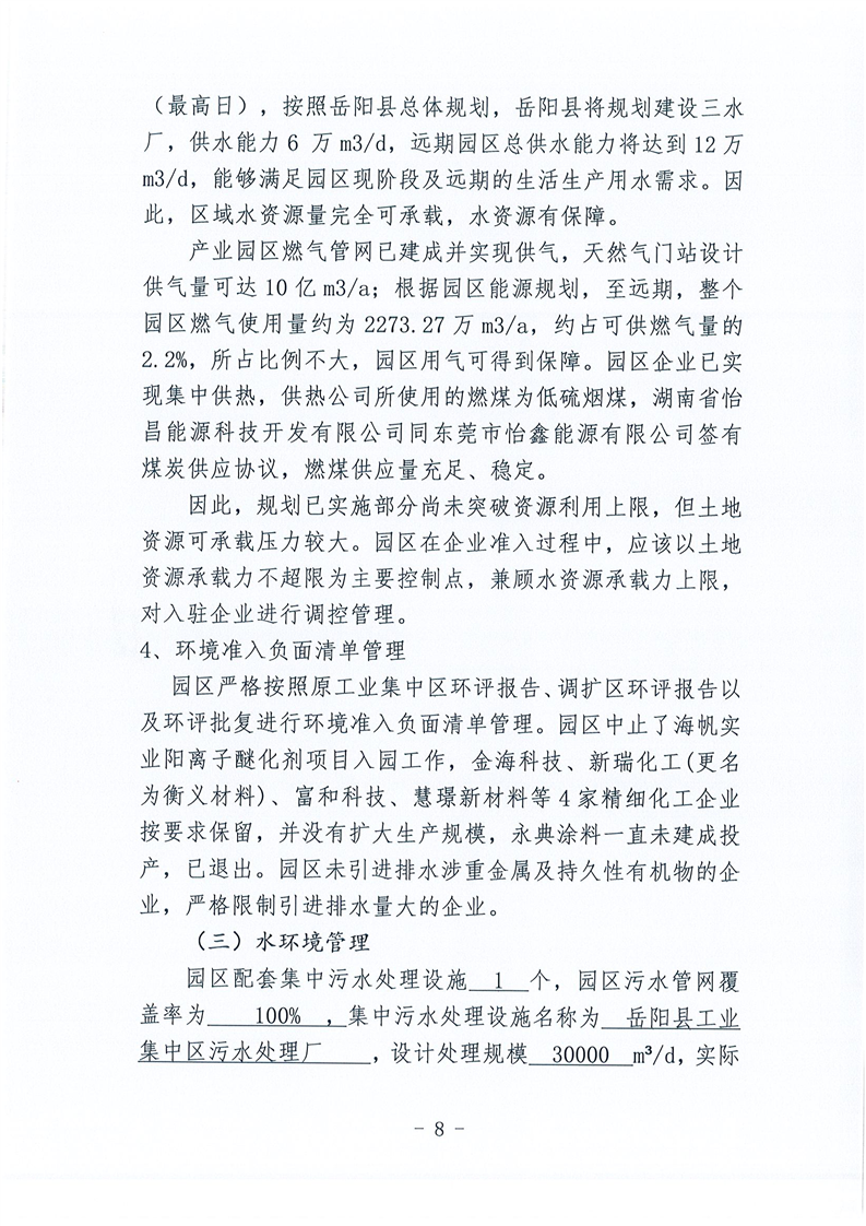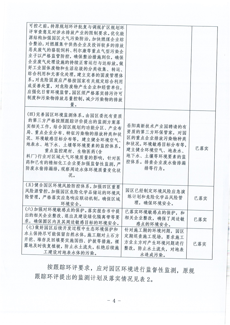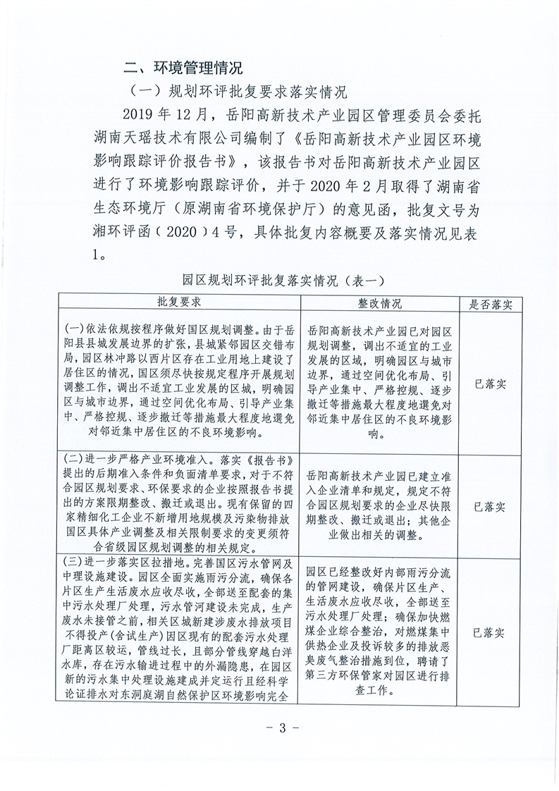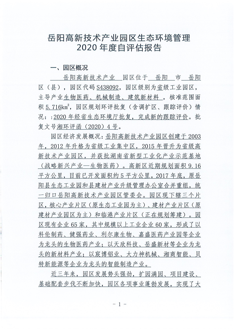 嶽陽高新技術產業園區生態環境管理2020年度自評估報告