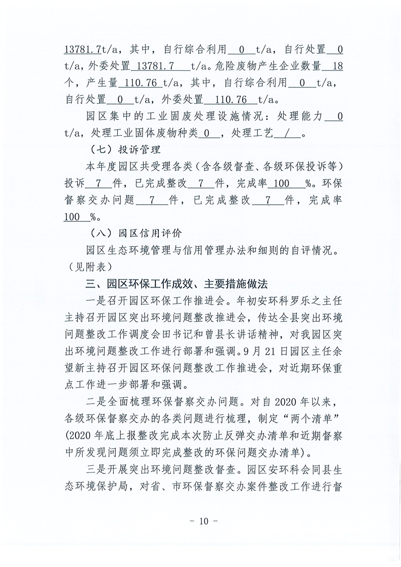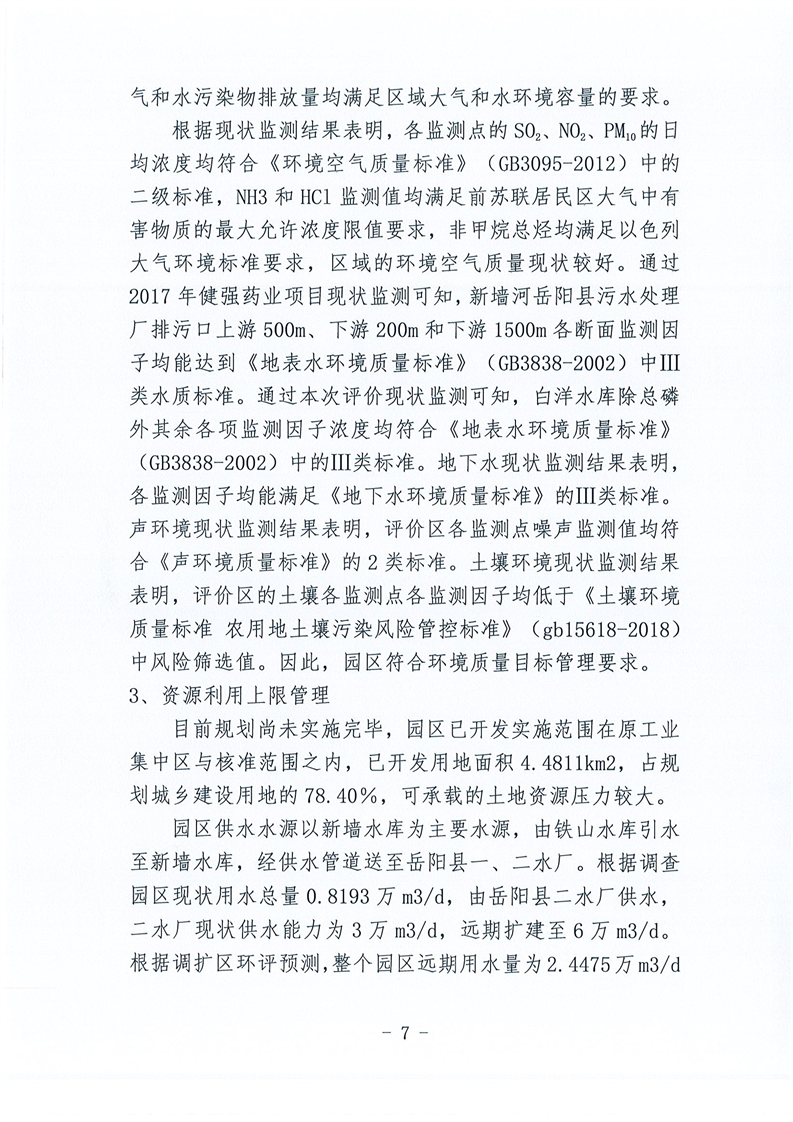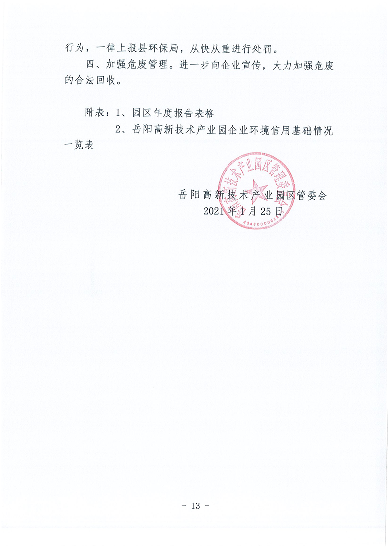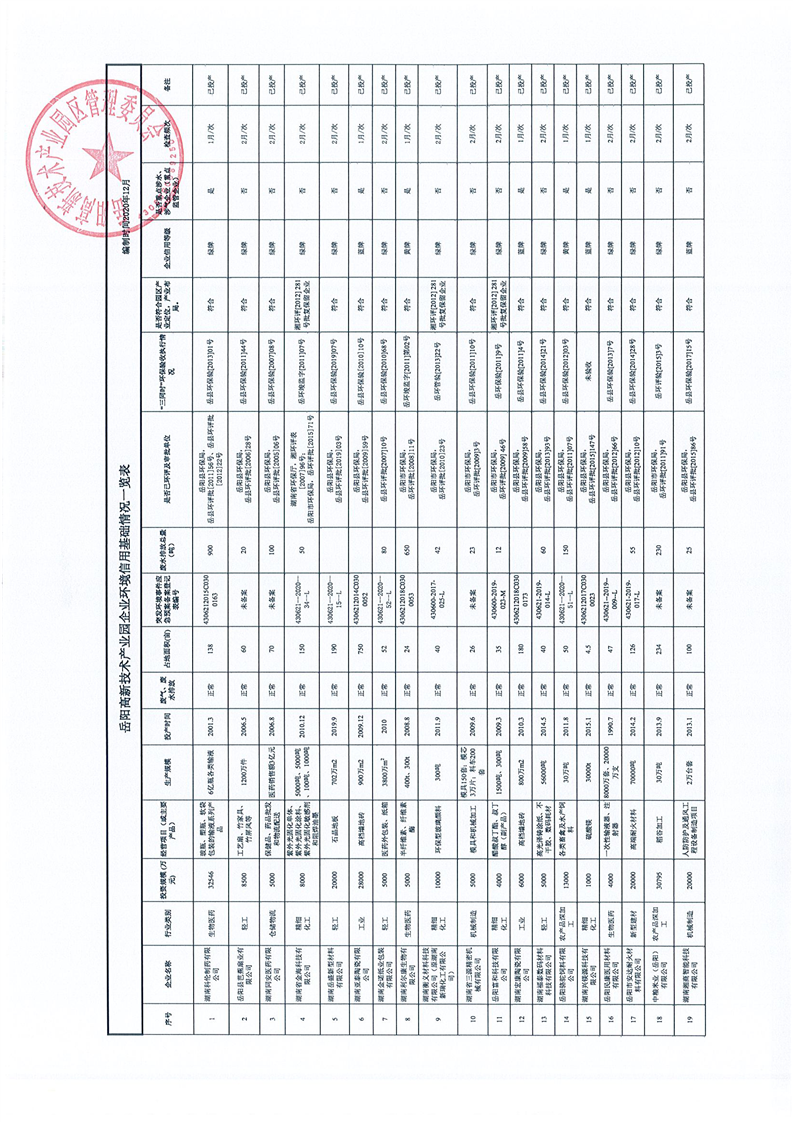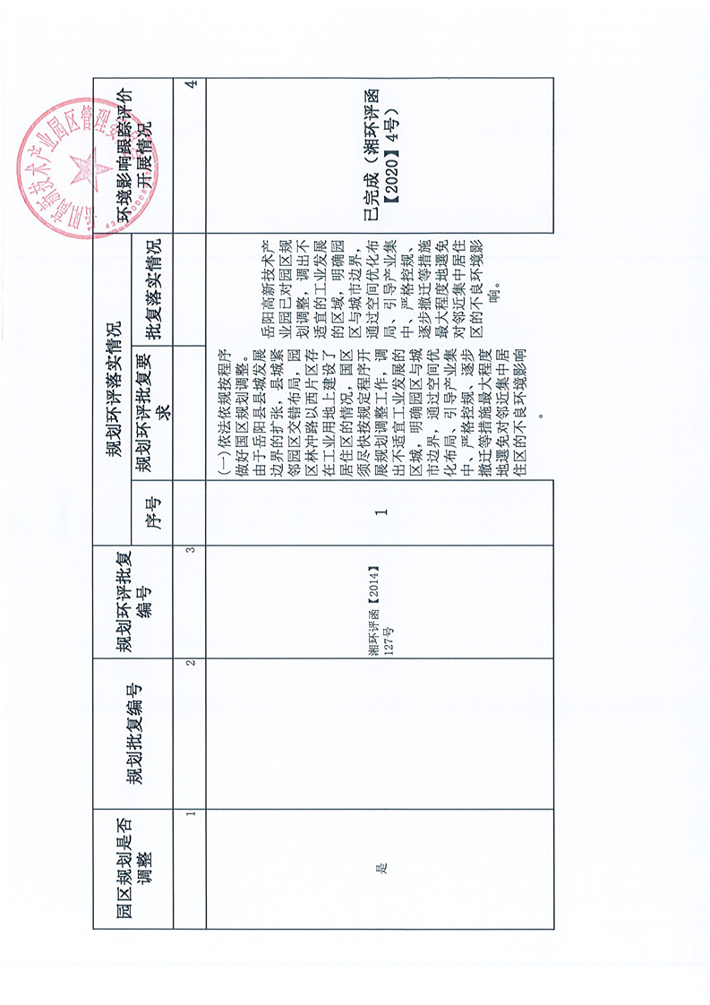 嶽陽高新技術產業園區生態環境管理2020年度自評估報告
