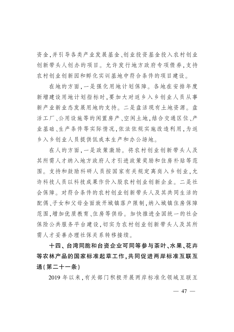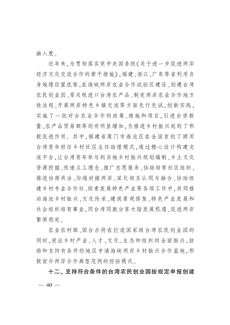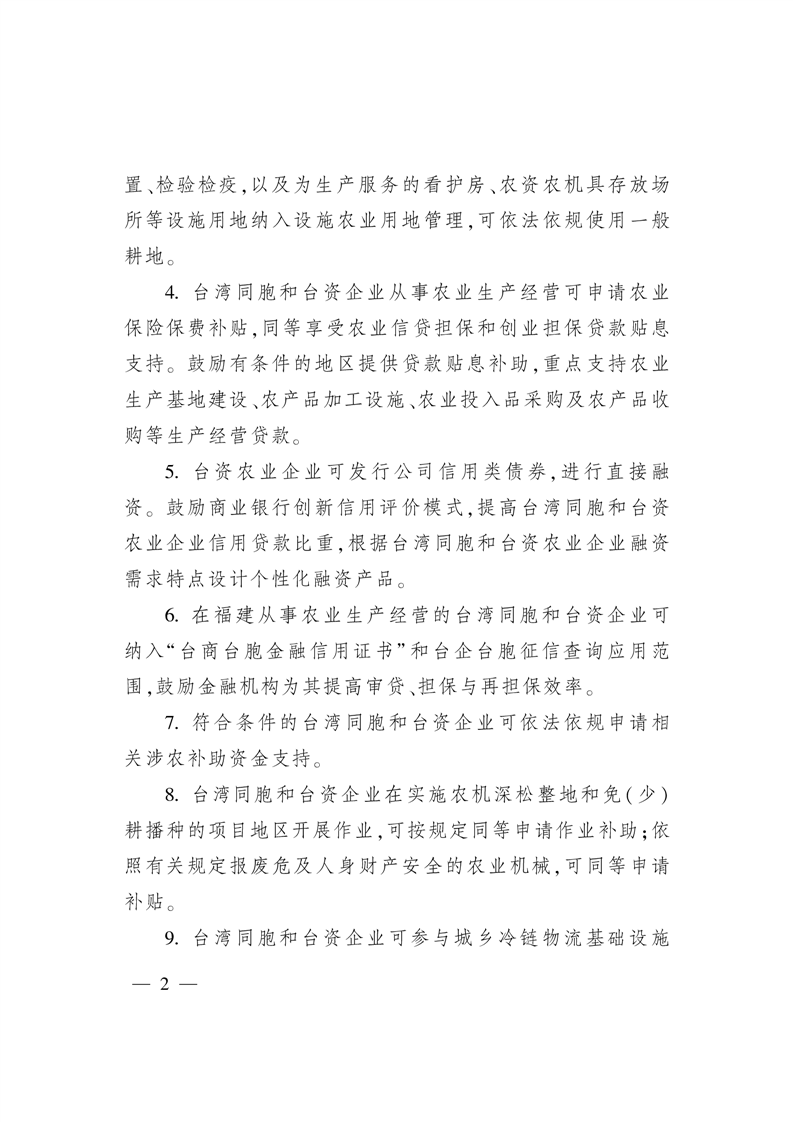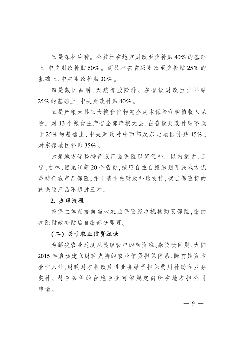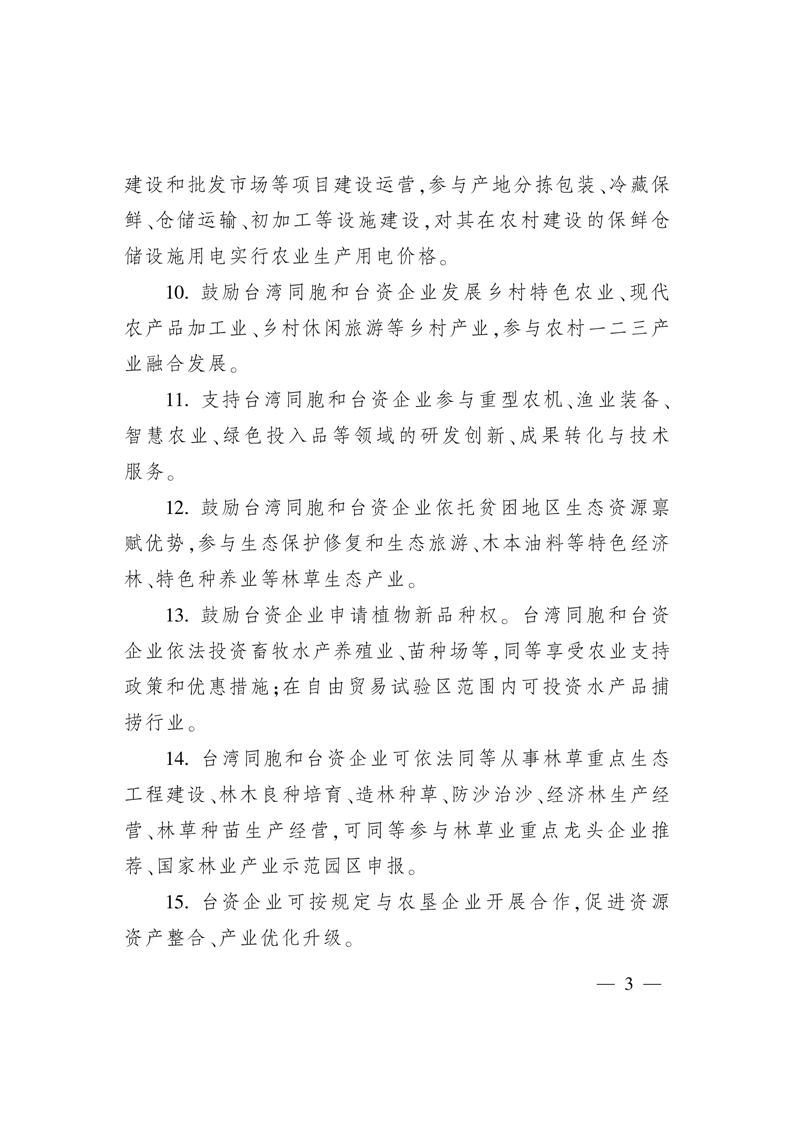 《關於支持台灣同胞台資企業在大陸農業林業領域發展的若幹措施》涉農政策解析