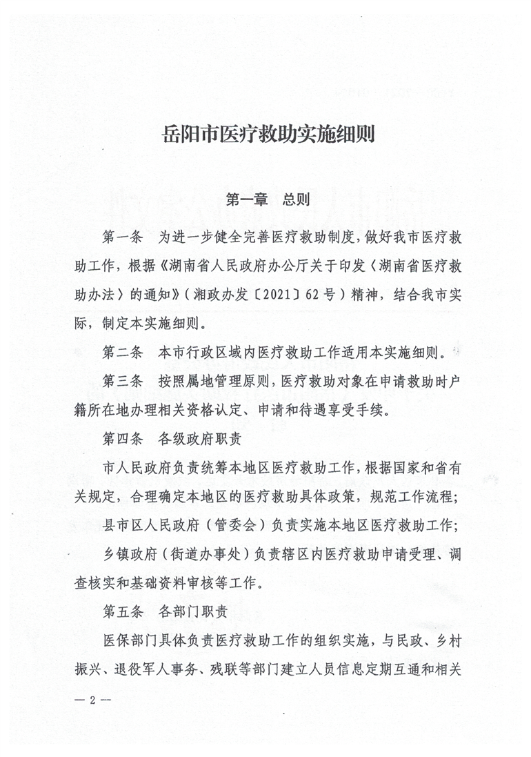 縣醫保局:關於印發《嶽陽市醫療救助實施細則》的通知