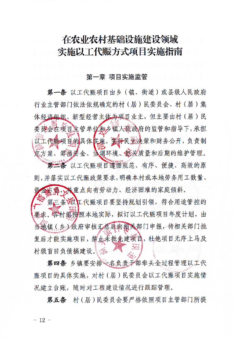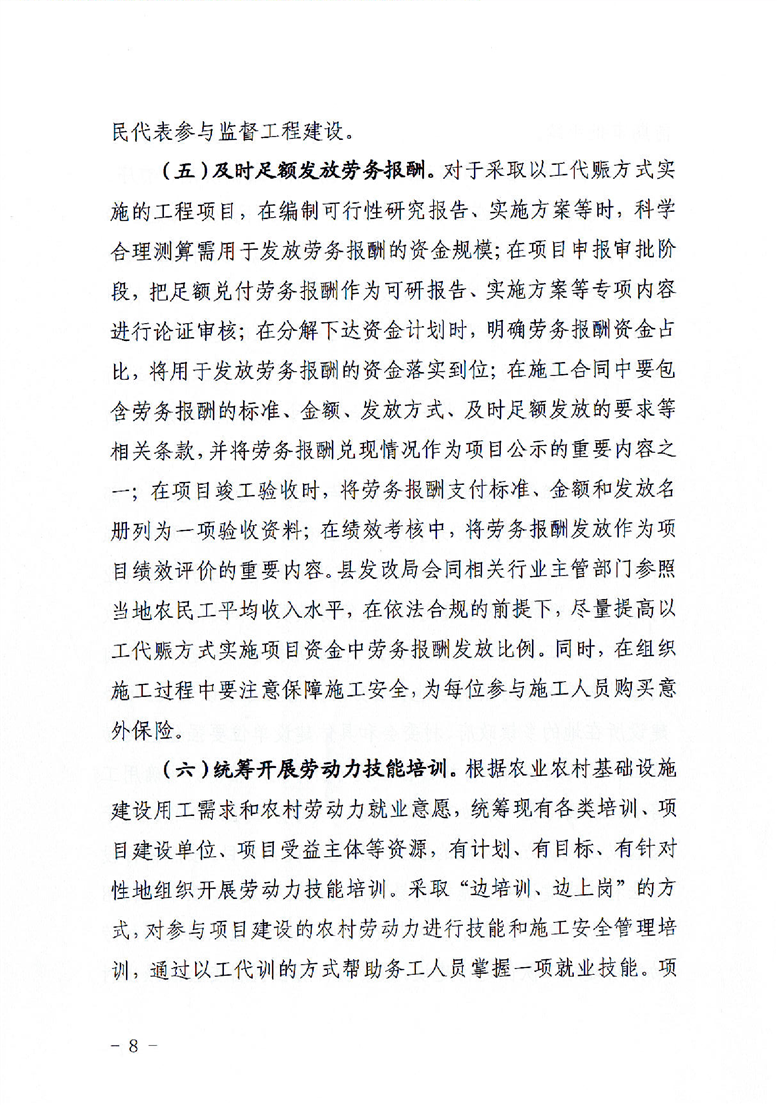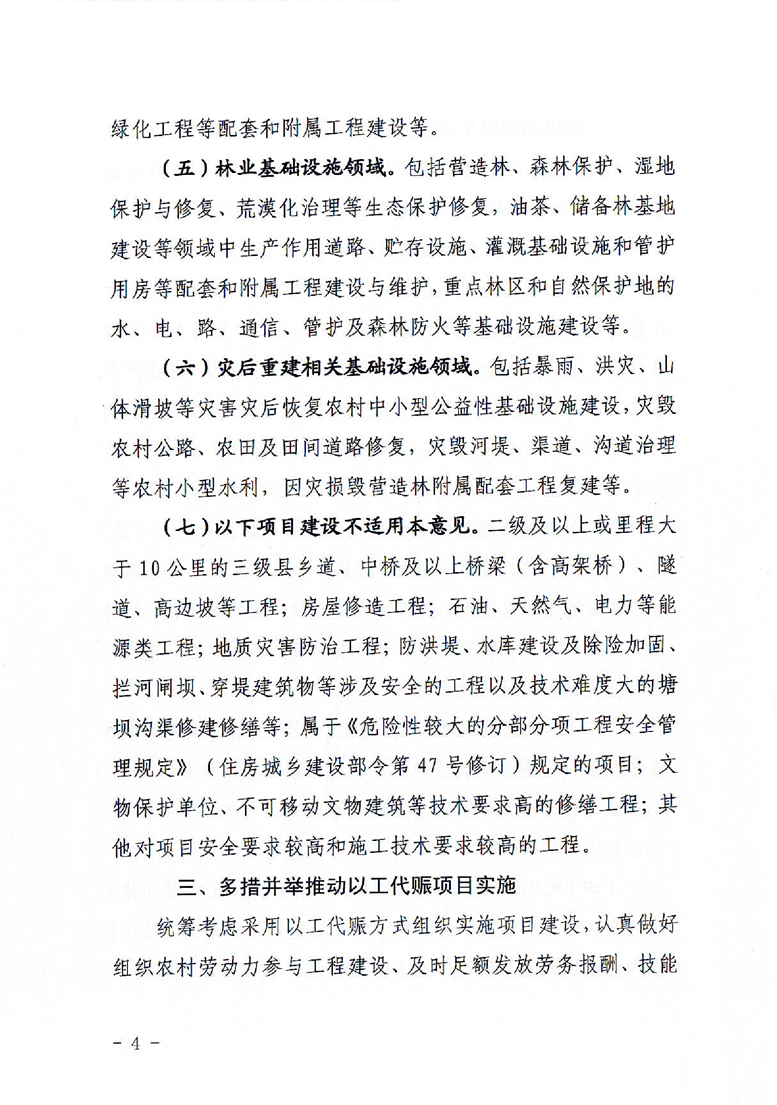 關於在農業農村基礎設施建設領域積極推廣以工代賑方式的指導意見(暫行)