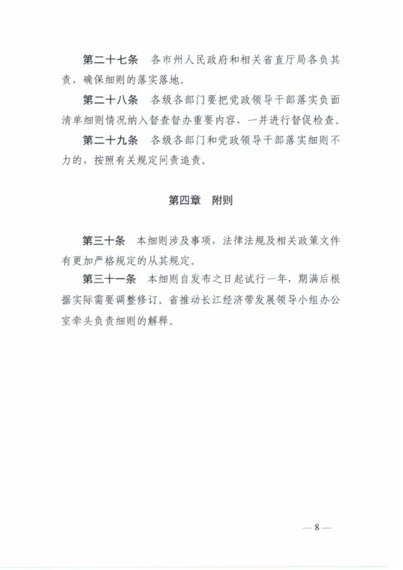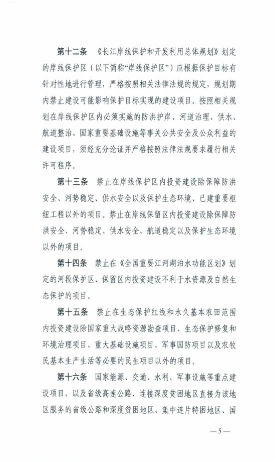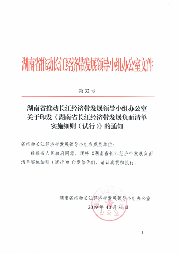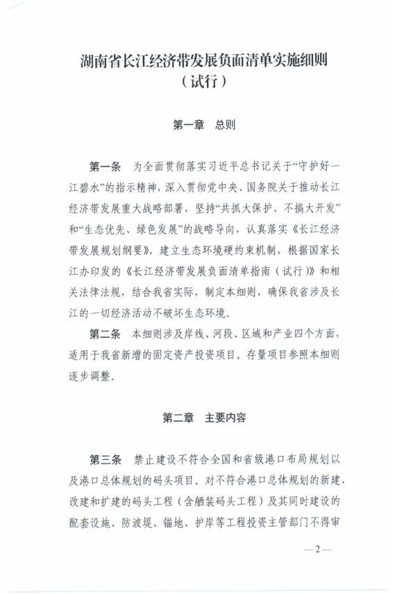 湖南省長江經濟帶發展負麵清單實施細則(試行)