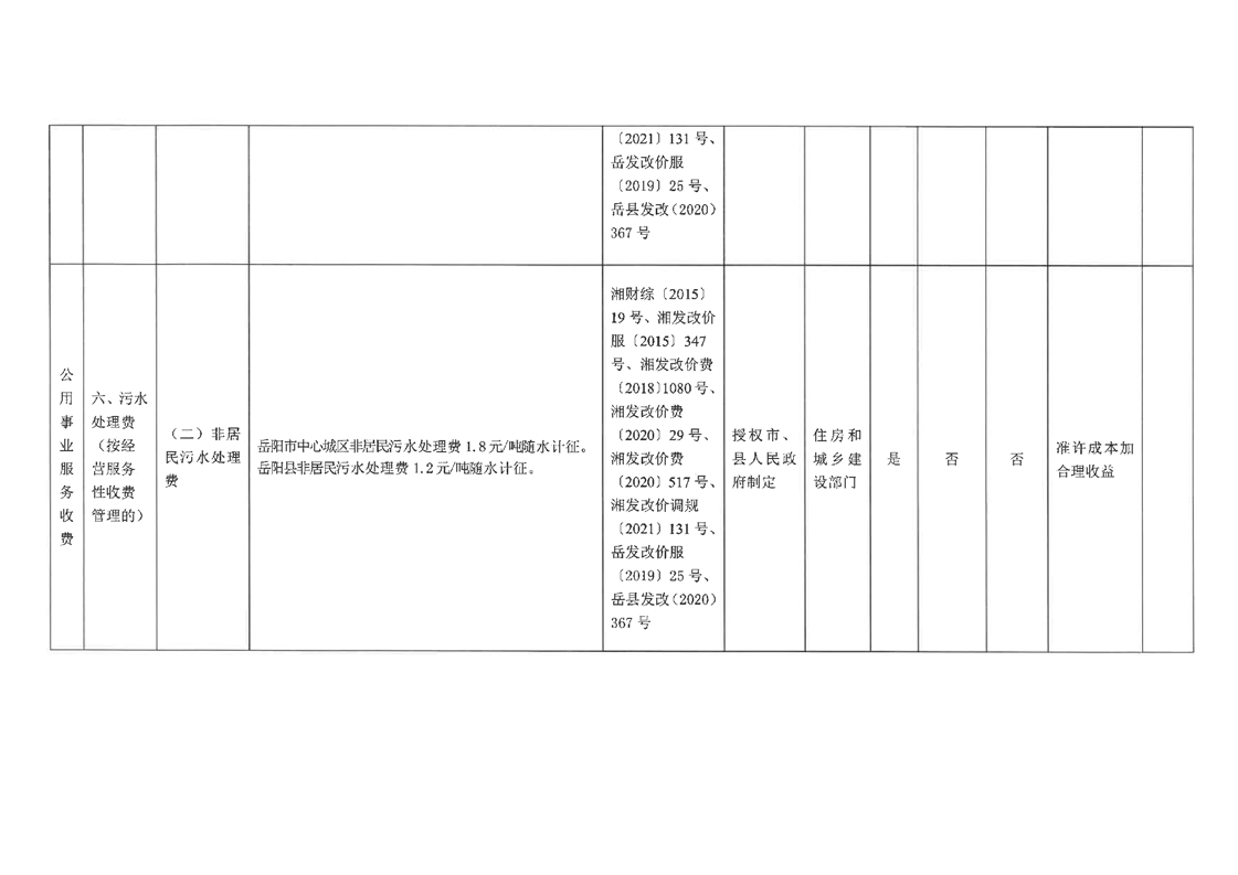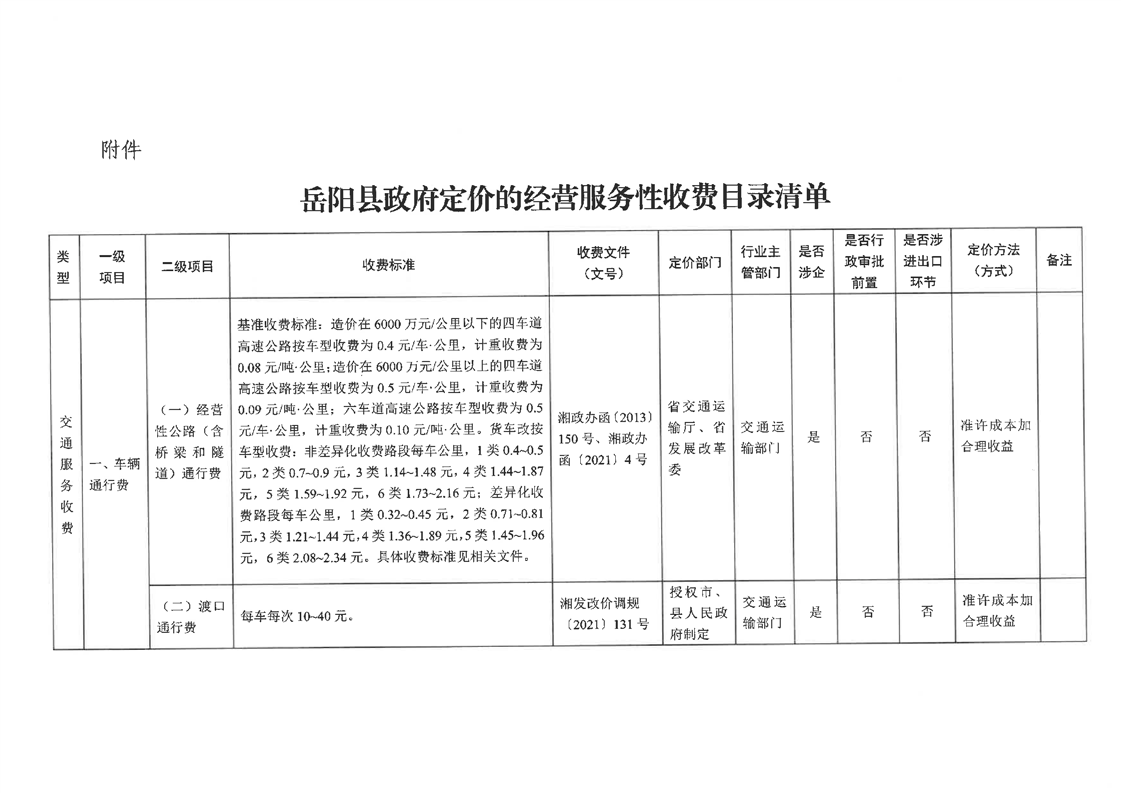 關於公布2023年嶽陽縣政府定價的經營服務性收費目錄清單的通告