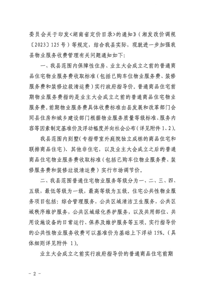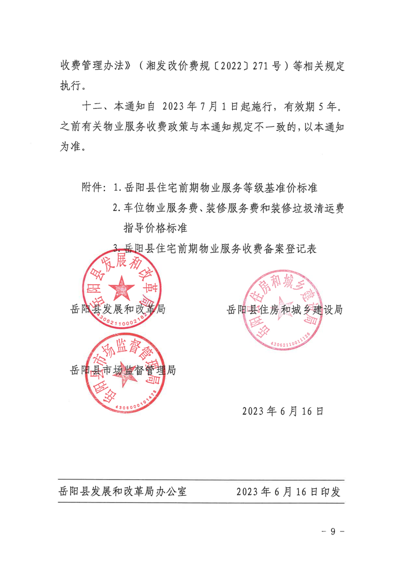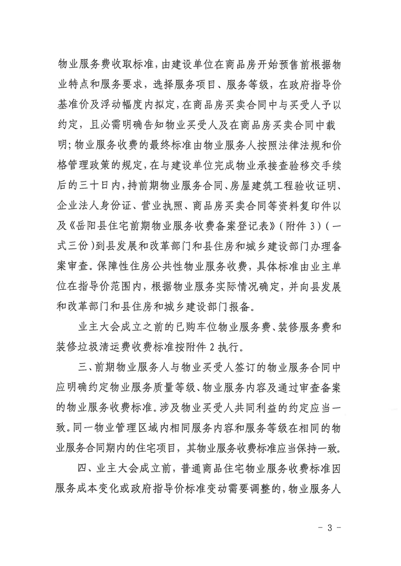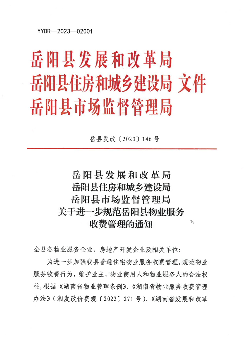 關於進一步規範嶽陽縣物業服務收費管理的通知