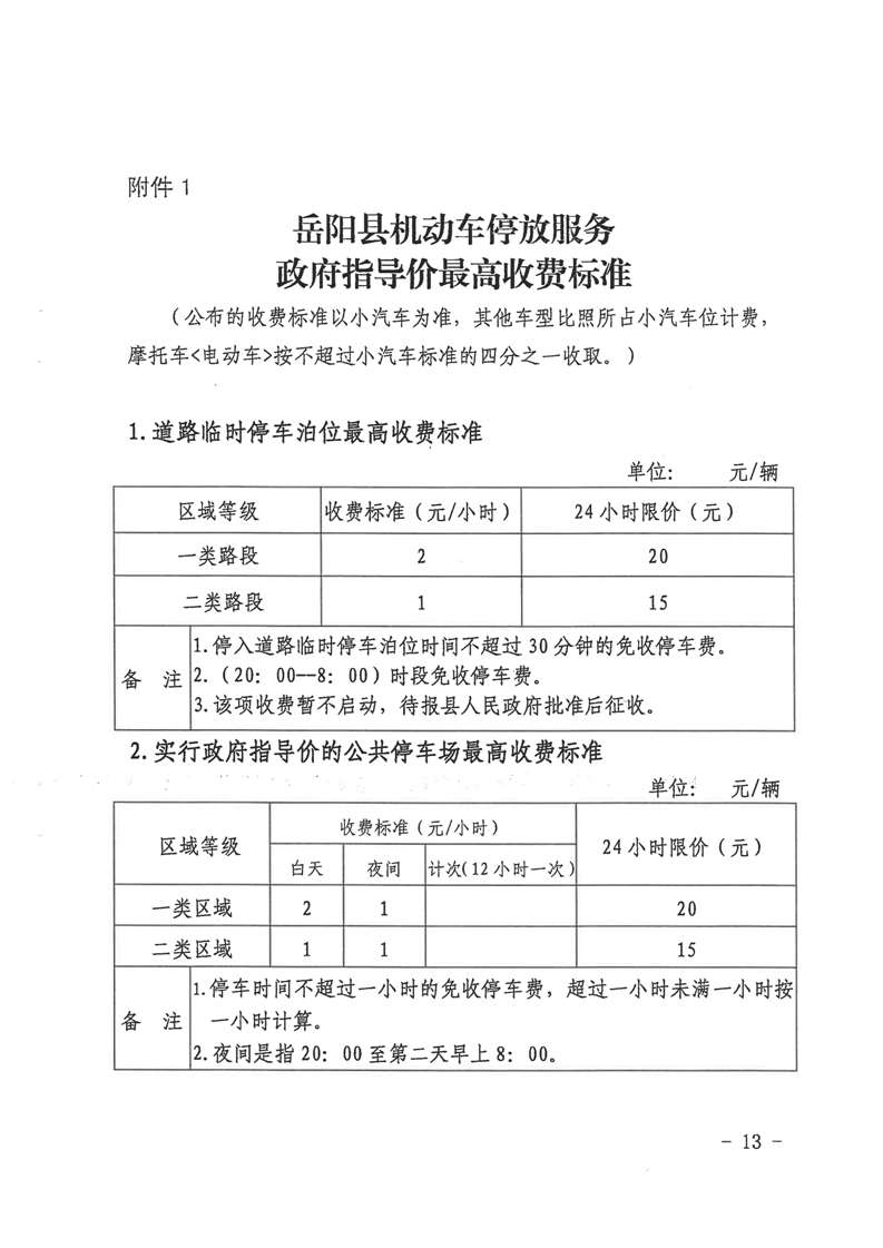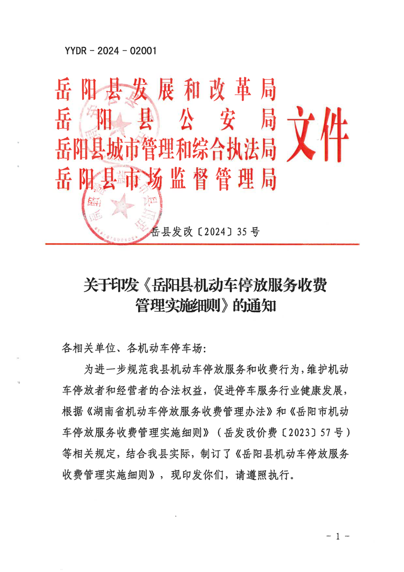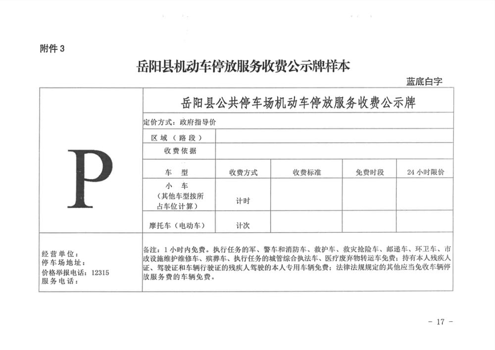 關於印發《嶽陽縣機動車停放服務收費管理實施細則》的通知