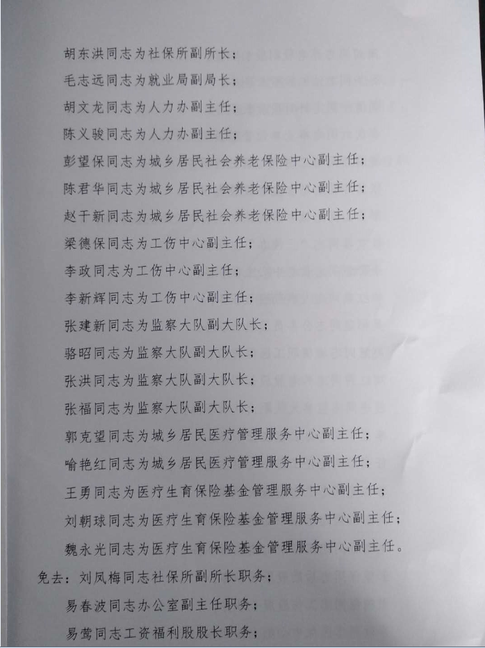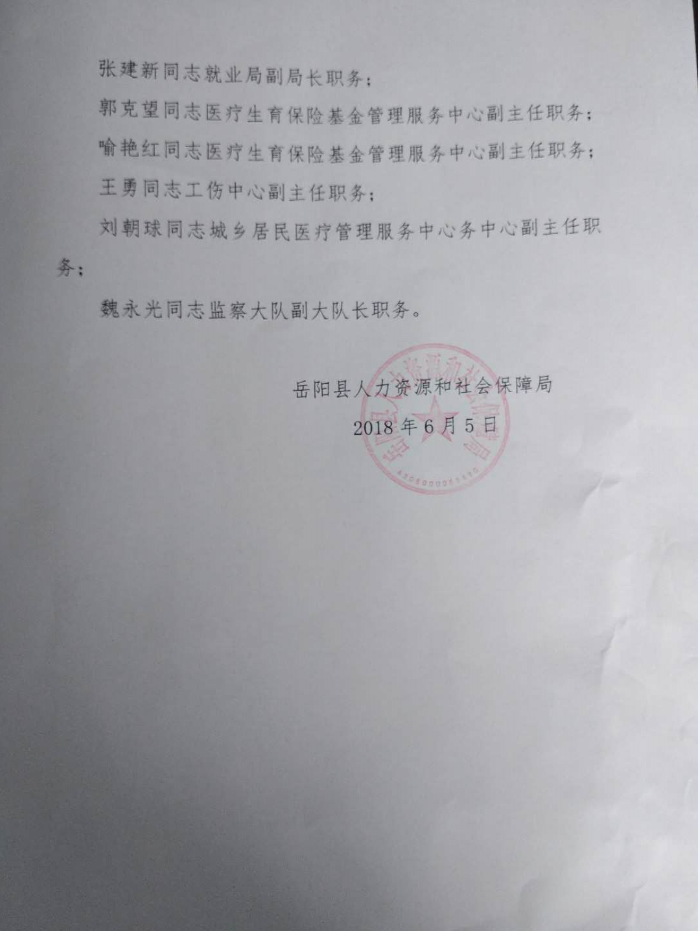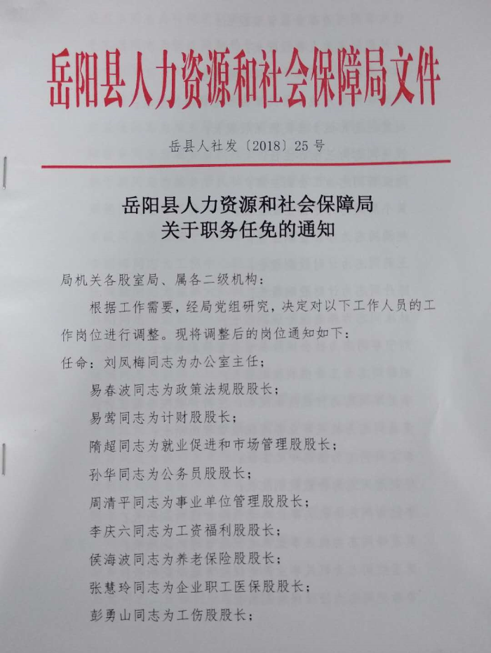 嶽陽縣人力資源和社會保障局關於職務任免的通知