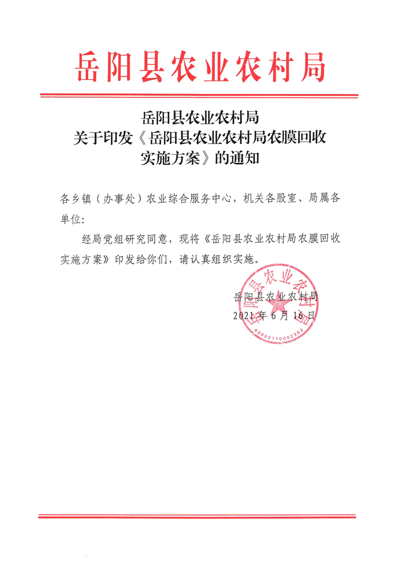 嶽陽縣農膜回收實施方案