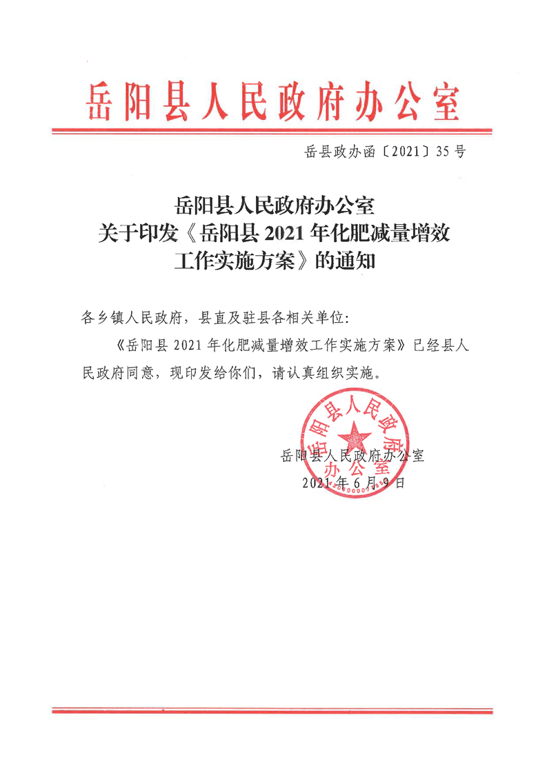 嶽陽縣2021年化肥減量增效工作實施方案