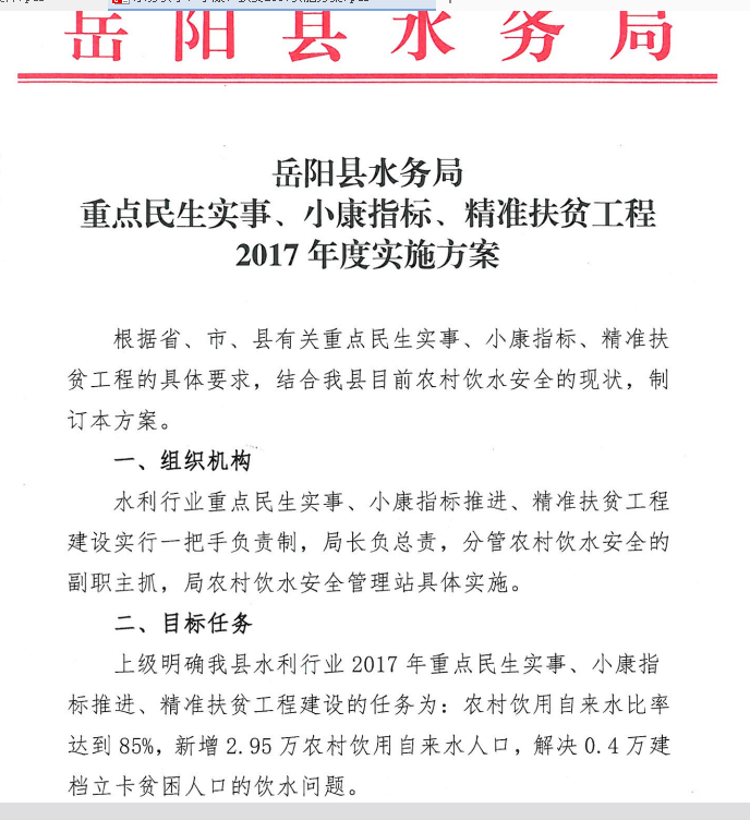 嶽陽縣水務局重點民生實事、小康指標、精準扶貧工程實施方案
