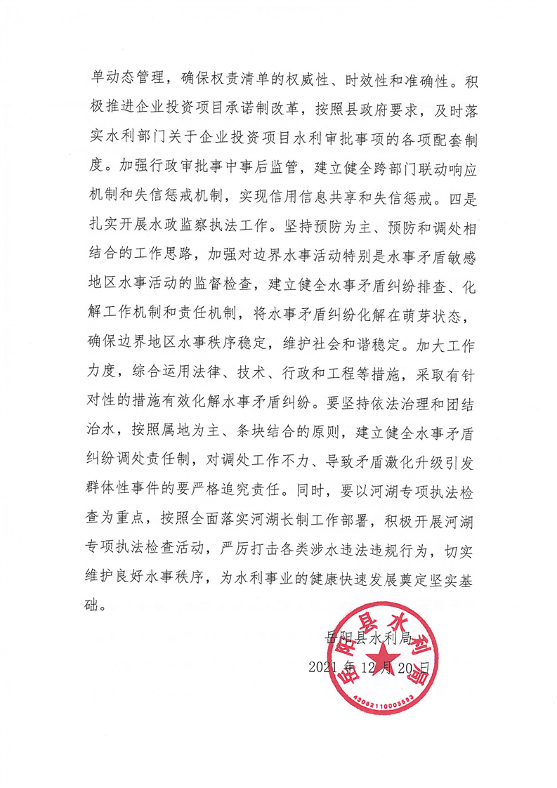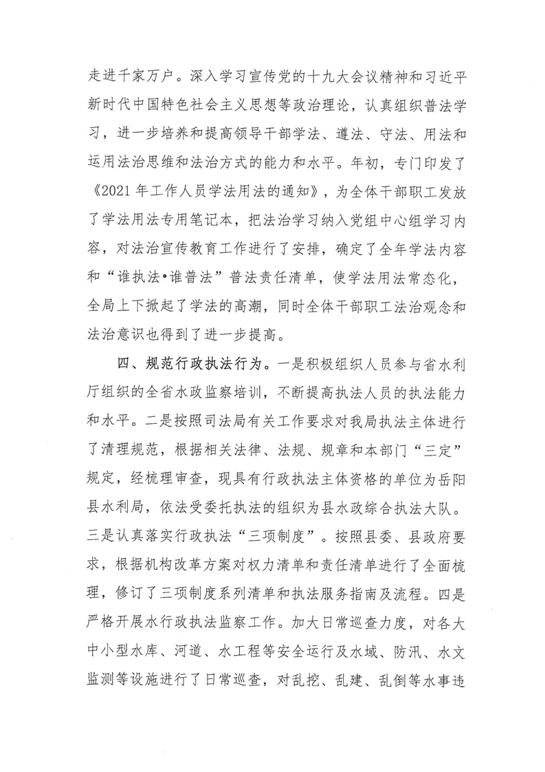 嶽陽縣水利局2021年度法治建設工作情況報告