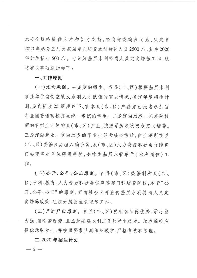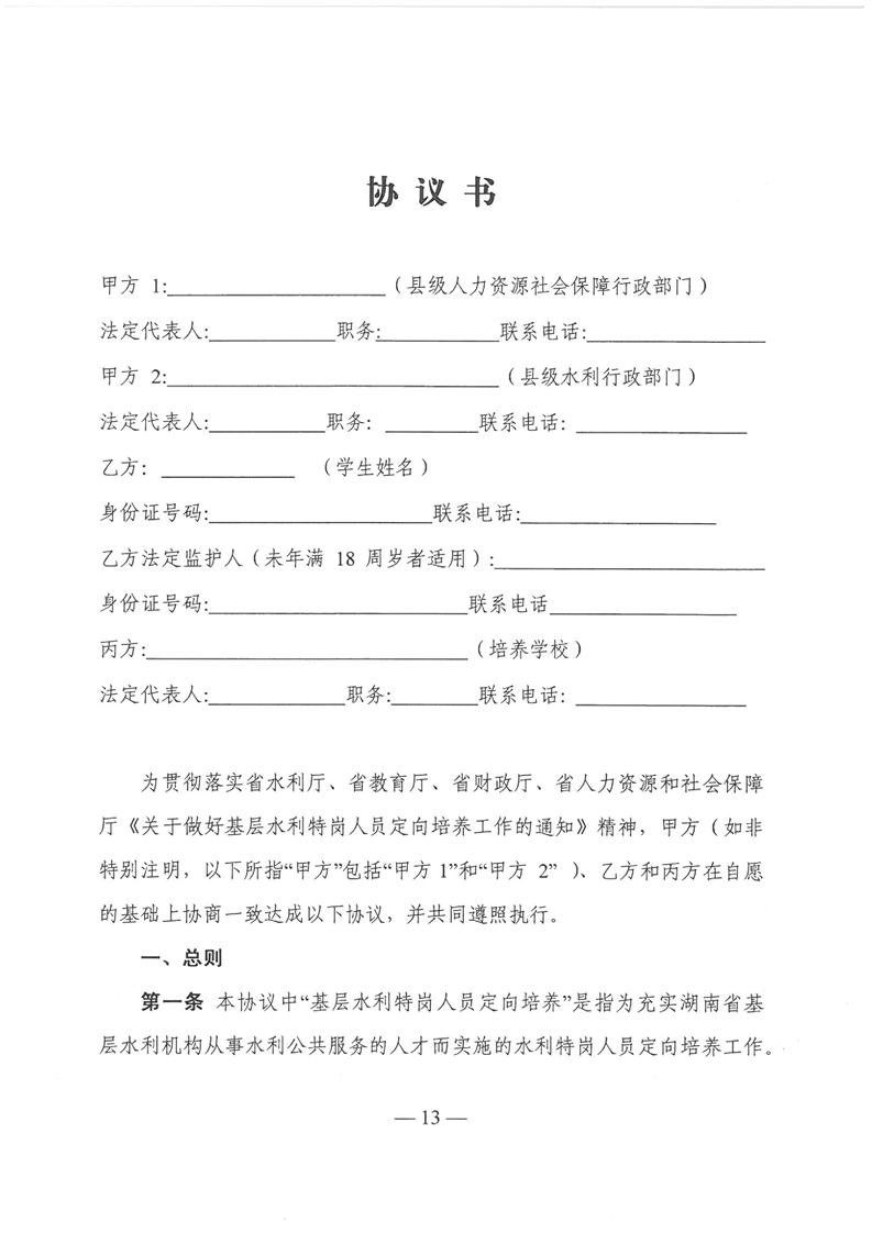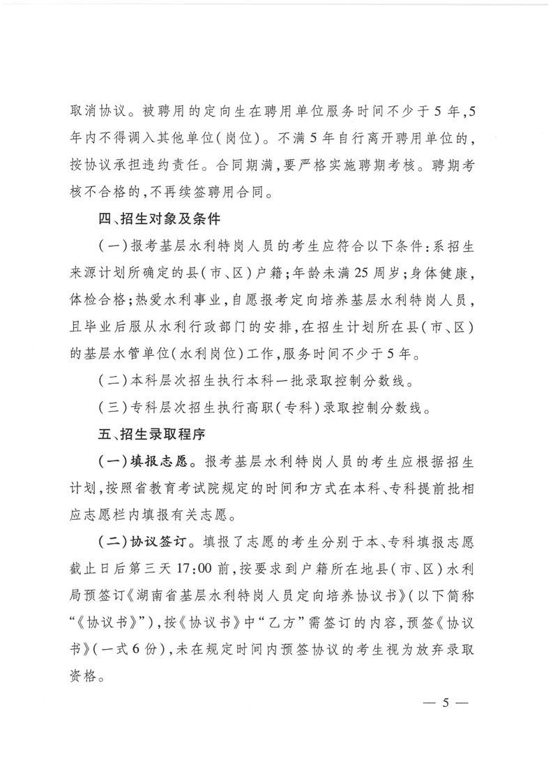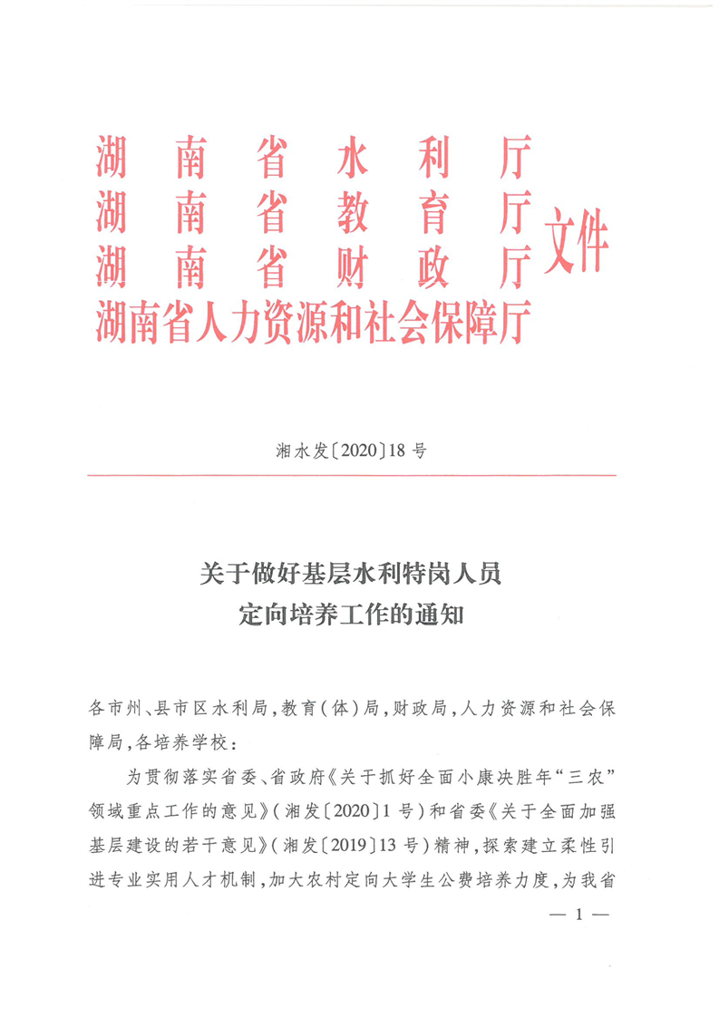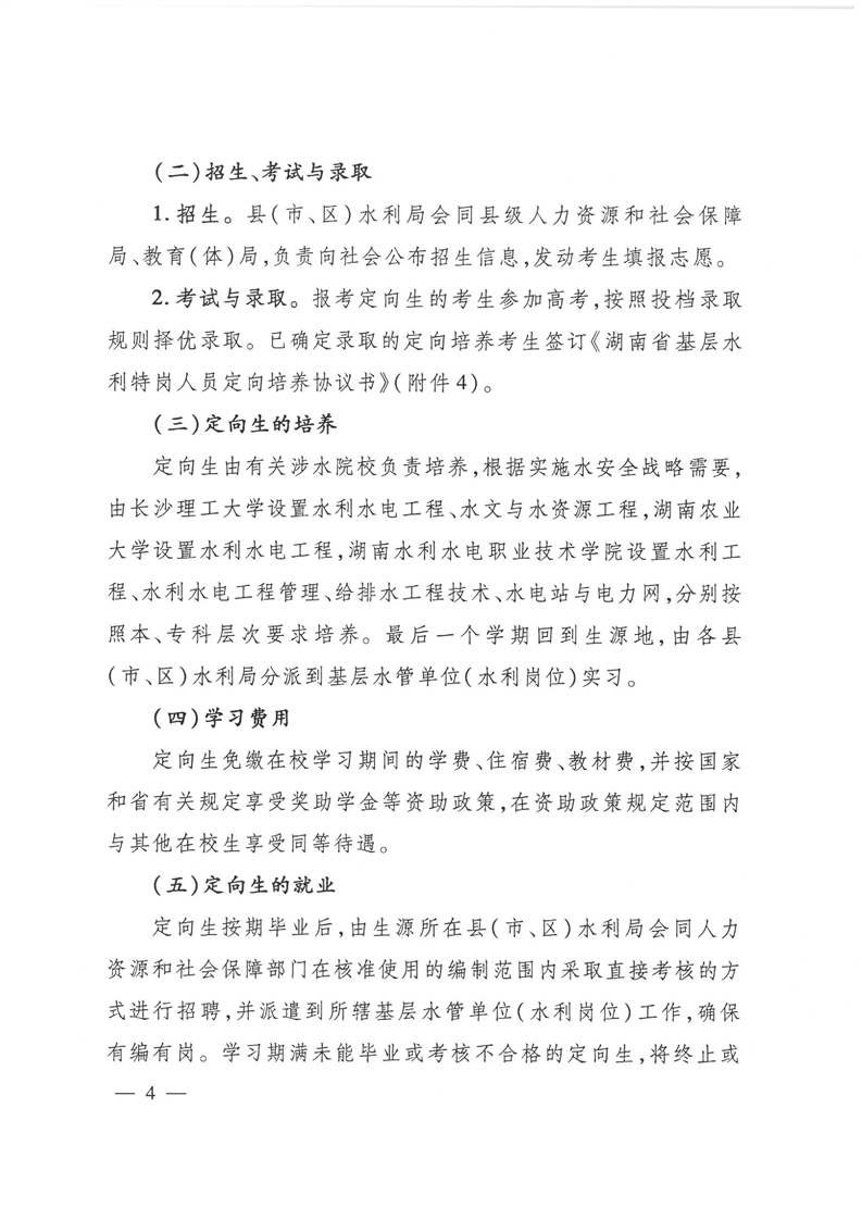 湖南省《關於做好基層水利特崗人員定向培養工作的通知》