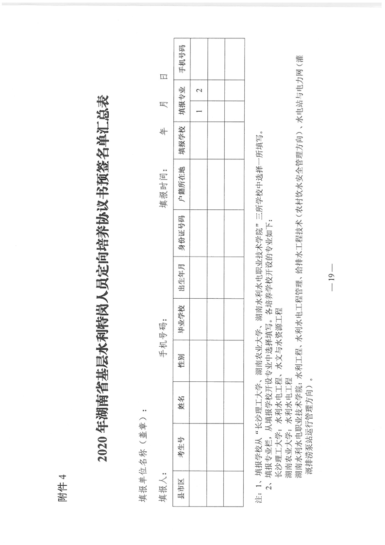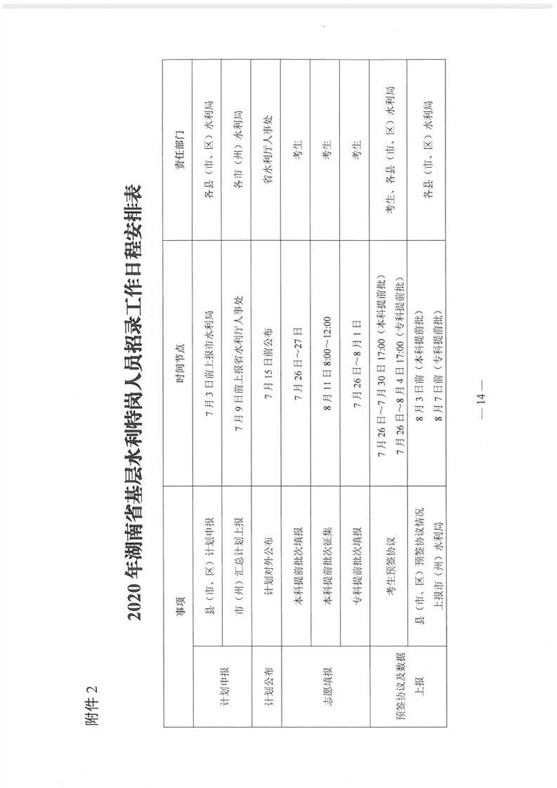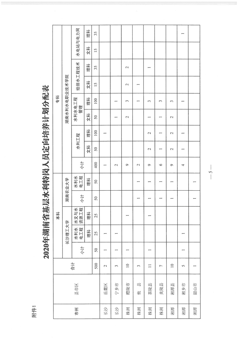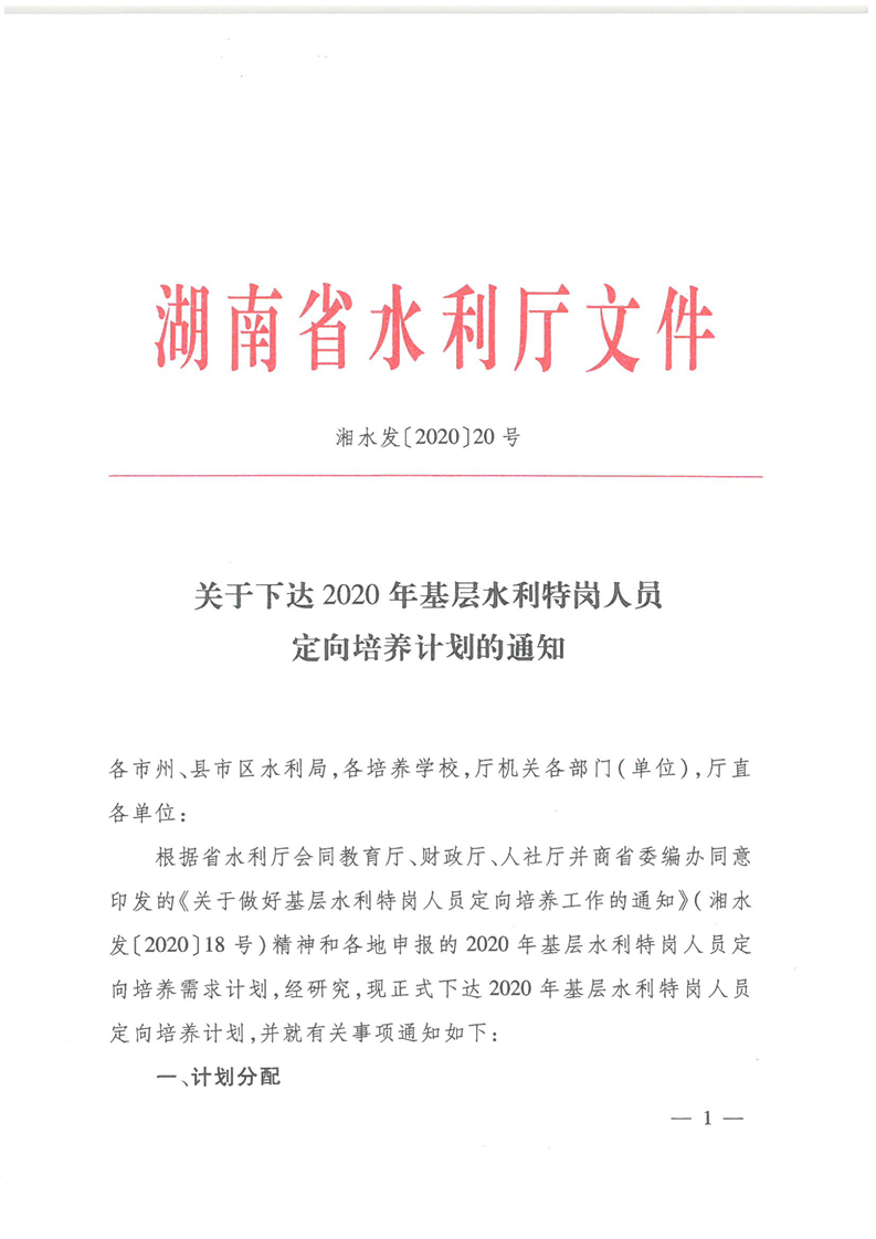 湖南省水利廳《關於下達2020年基層水利特崗人員定向培養計劃的通知》