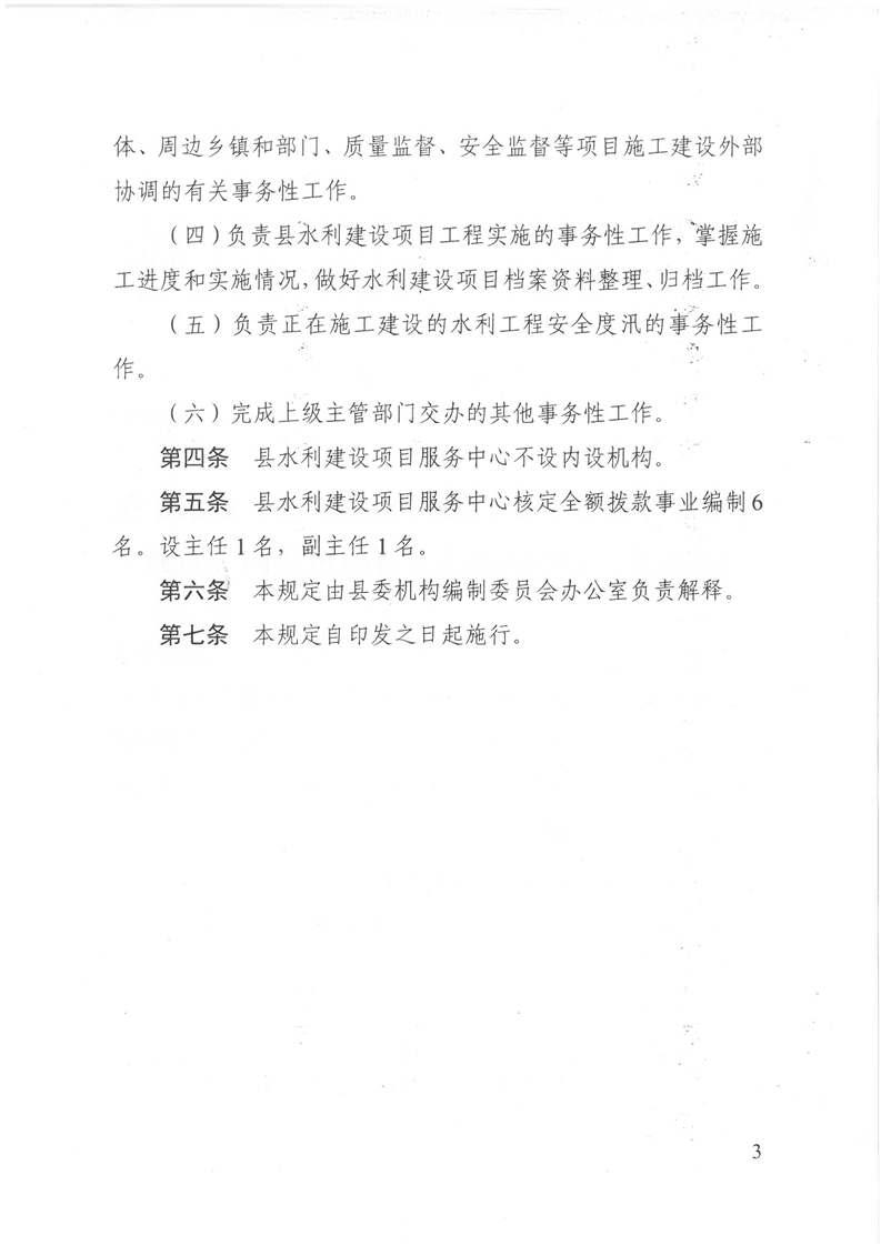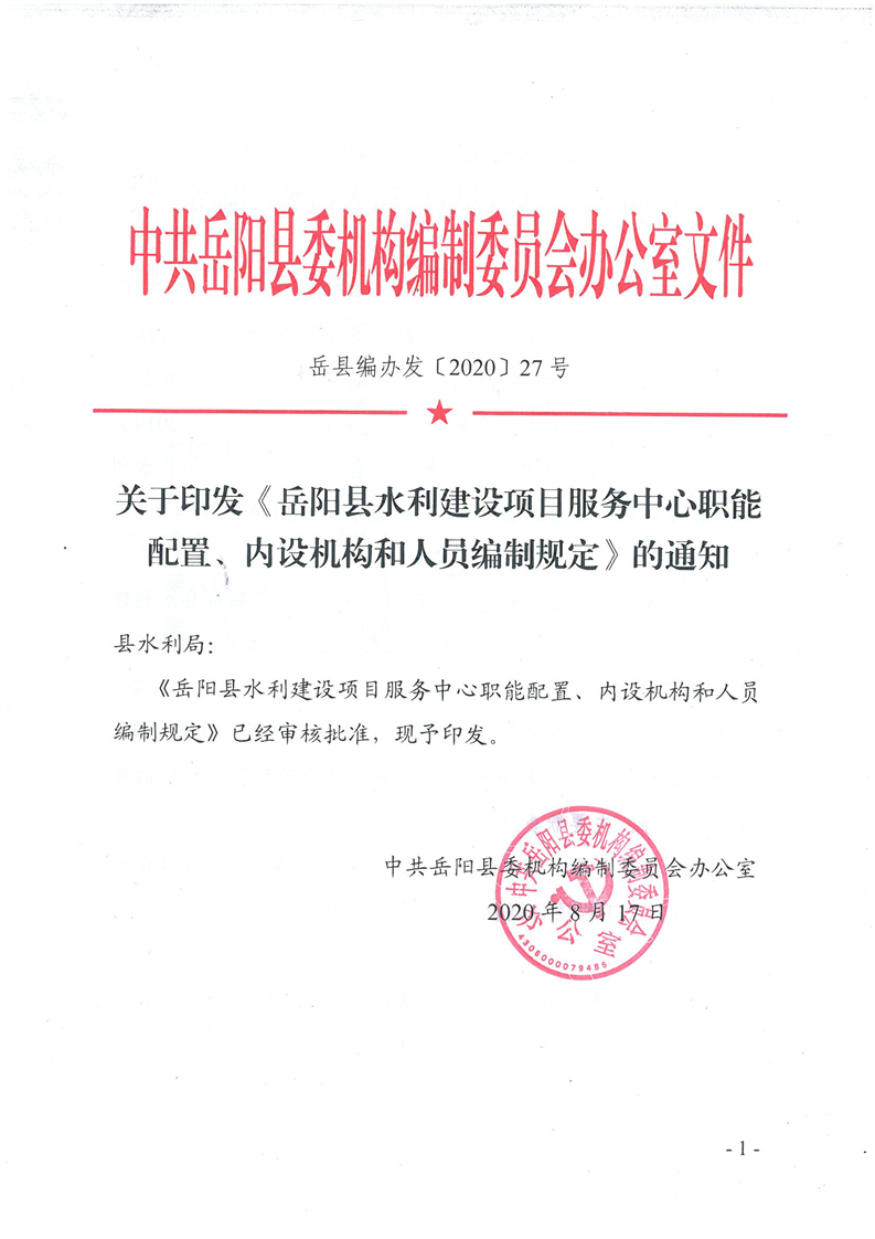 嶽陽縣水利建設項目服務中心職能配置、內設機構和人員編製規定