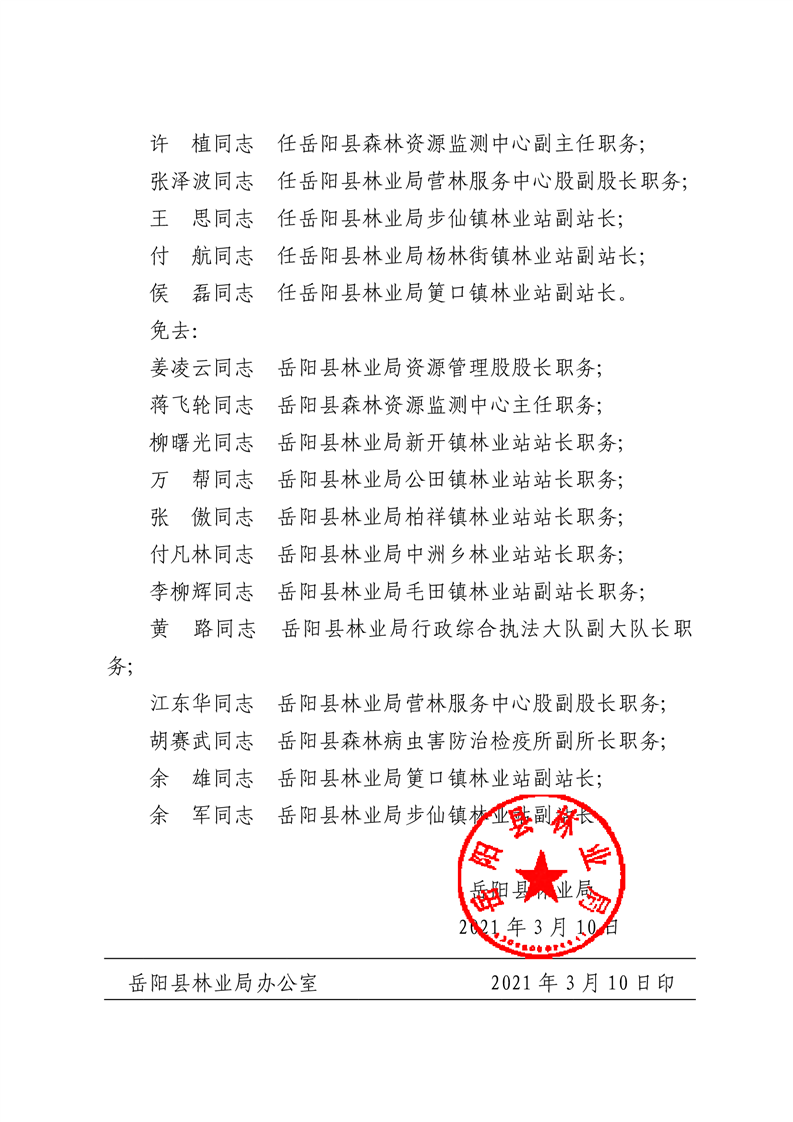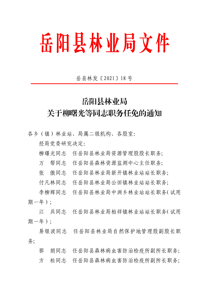 嶽陽縣林業局關於柳曙光等同誌職務任免的通知
