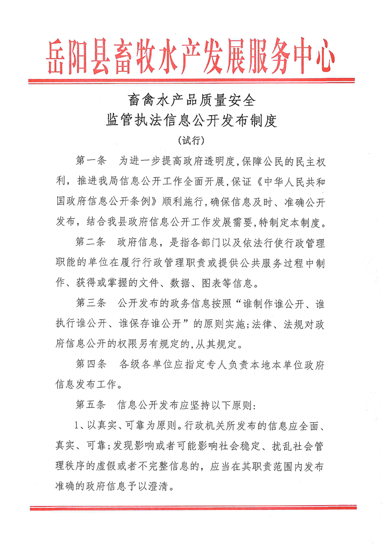畜禽水產品質量安全監管執法信息公開發布製度(試行)
