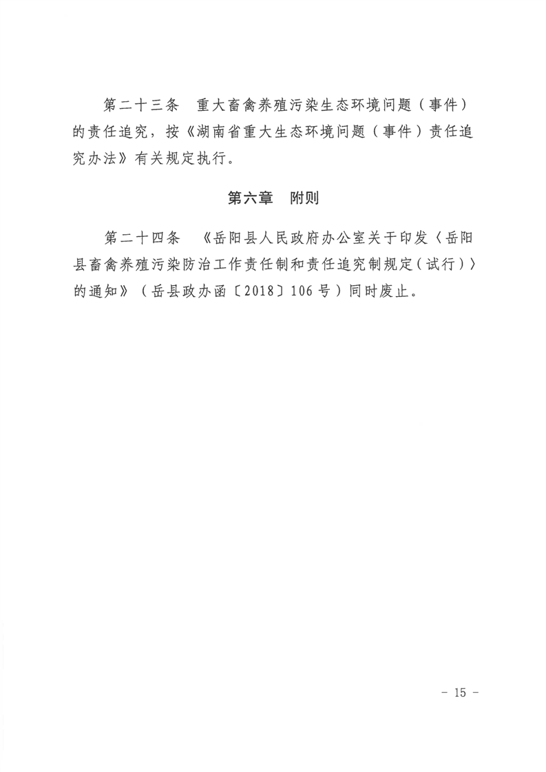 嶽陽縣人民政府關於印發《嶽陽縣畜禽規模養殖汙染防治長效監管機製和責任追究規定》的通知