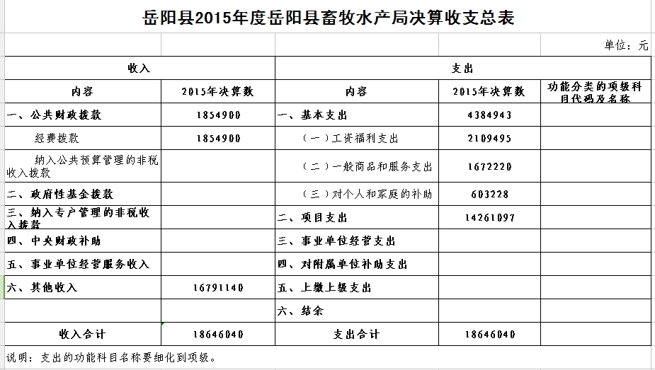 嶽陽縣2015年度嶽陽縣畜牧水產局決算收支總表