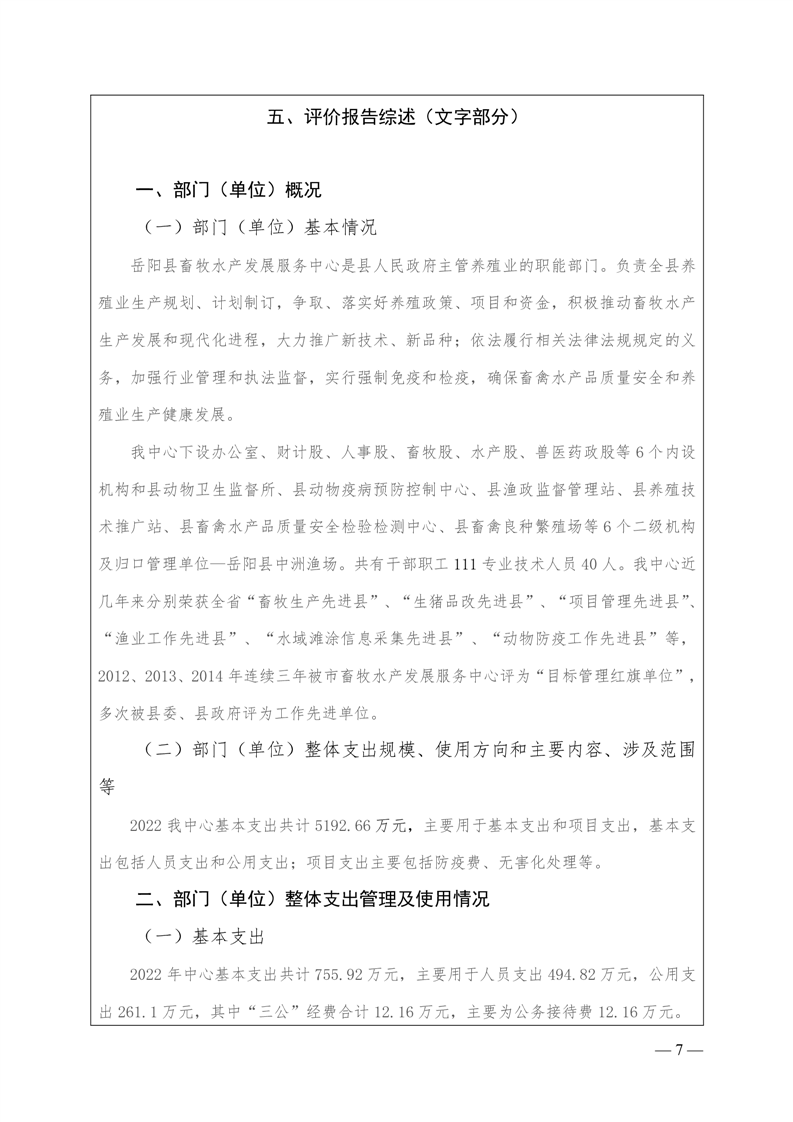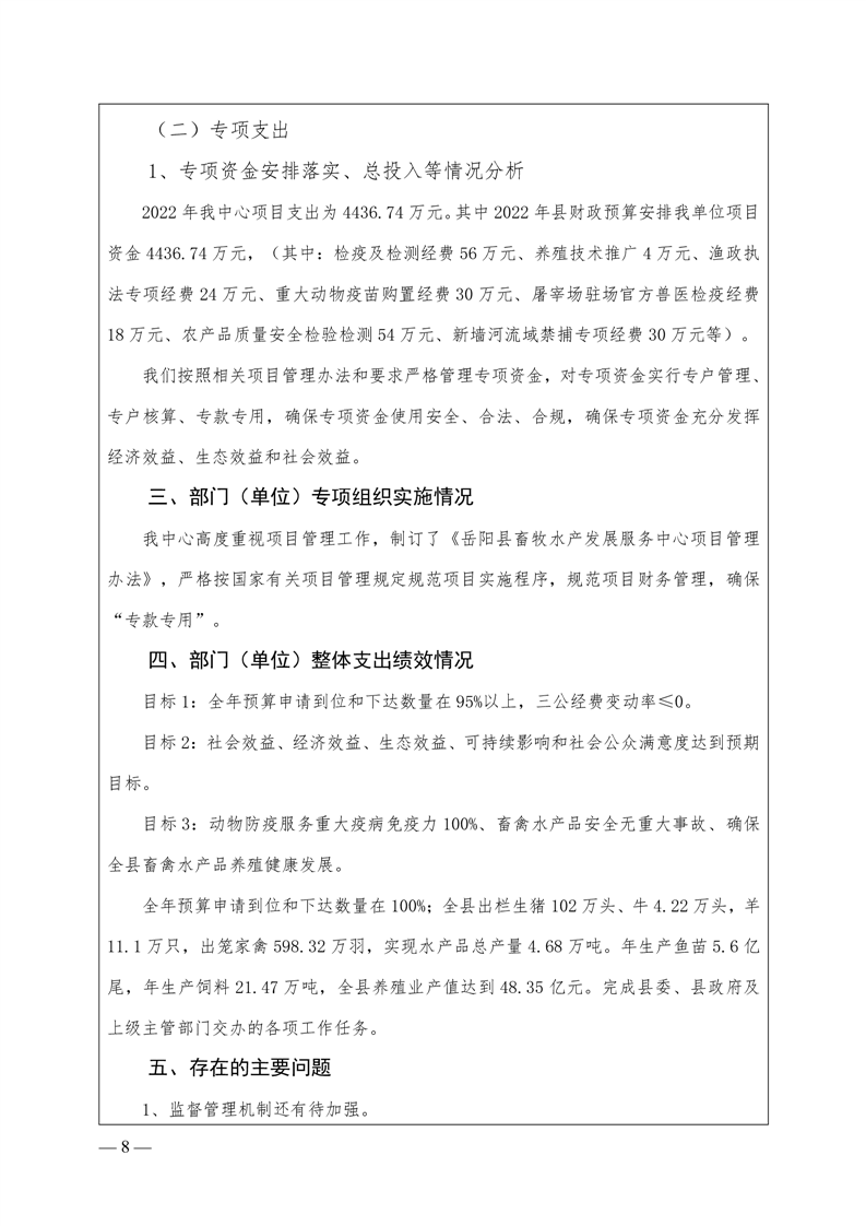嶽陽縣2022年度整體支出績效自評報告(縣畜牧水產發展服務中心)