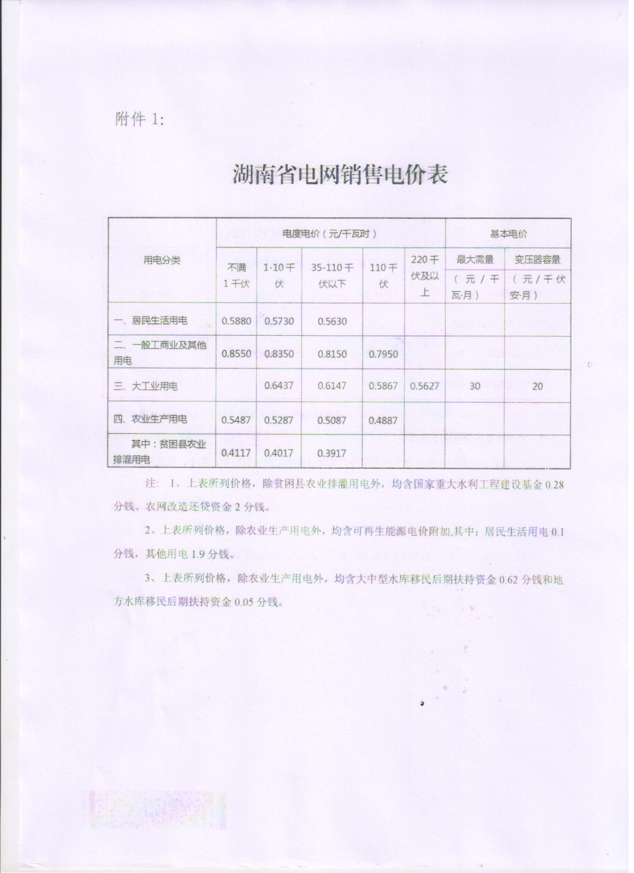 湖南省發展和改革委員會關於調整電價結構有關事項的通知