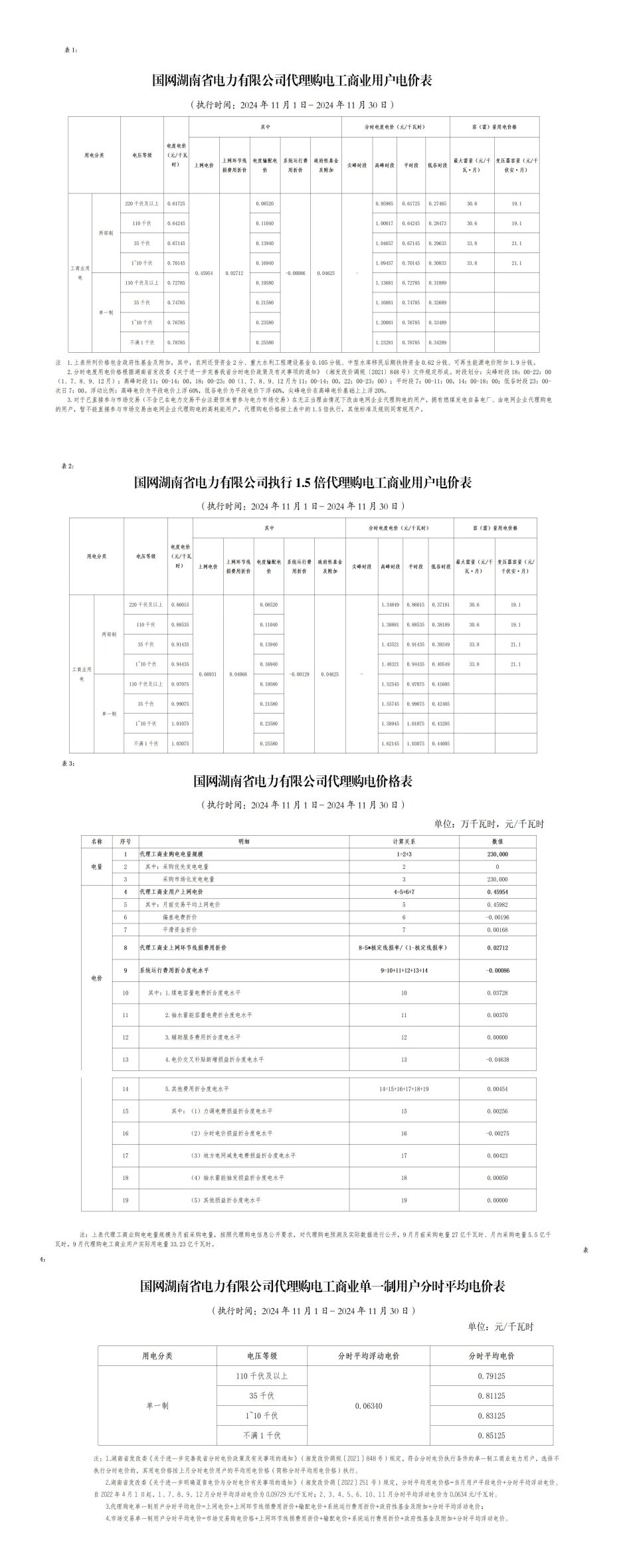 國網湖南省電力有限公司代理購電電價標準